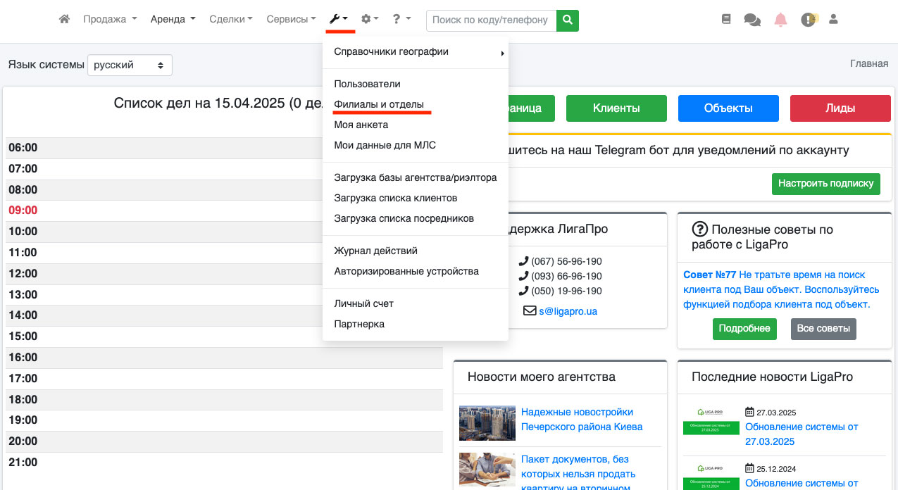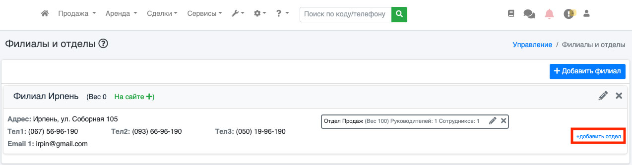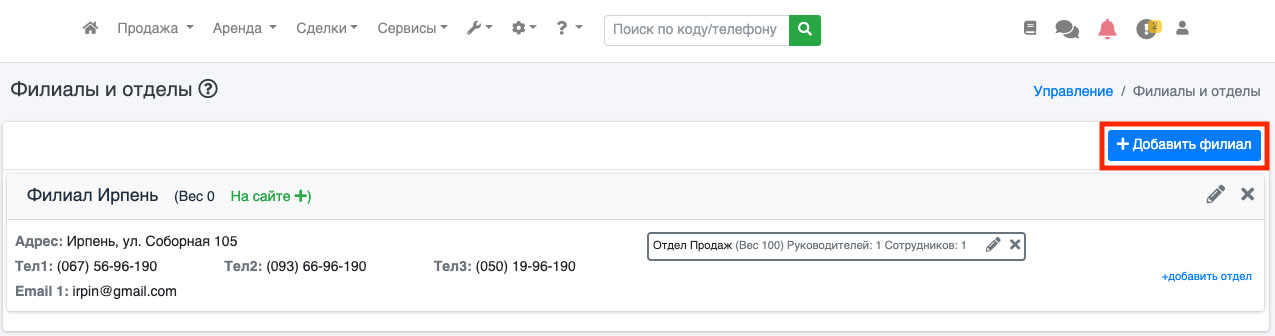 Щоб додати філію зайдіть в пункт «Управління - Філії та відділи» (Рис. 790).