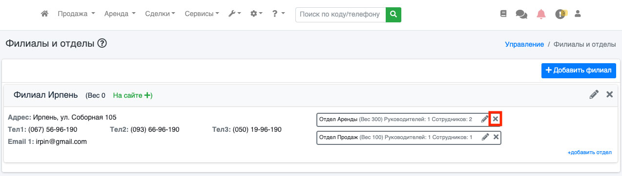 Щоб видалити непотрібний відділ просто натисніть на іконку «хрестик» навпроти непотрібного відділу (Рис. 796).