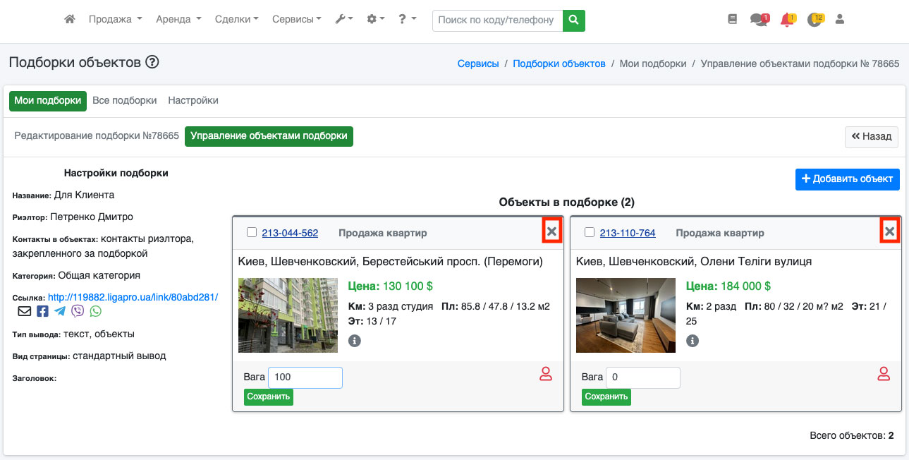 ВНИМАНИЕ: если Вы хотите передавать все объекты, которые у Вас в базе отправляете ссылку «Все объекты», если Вы хотите передавать выбранные объекты (например, выгружать только эксклюзивные объекты), отправляете ссылку «Выбранные объекты» (Рис. 630).