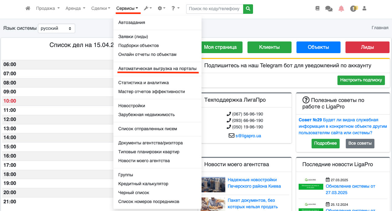 В системе ЛигаПро существует возможность автоматической выгрузки объектов на портал dom.pliz.info.