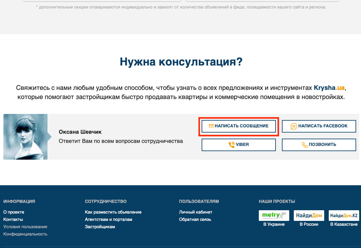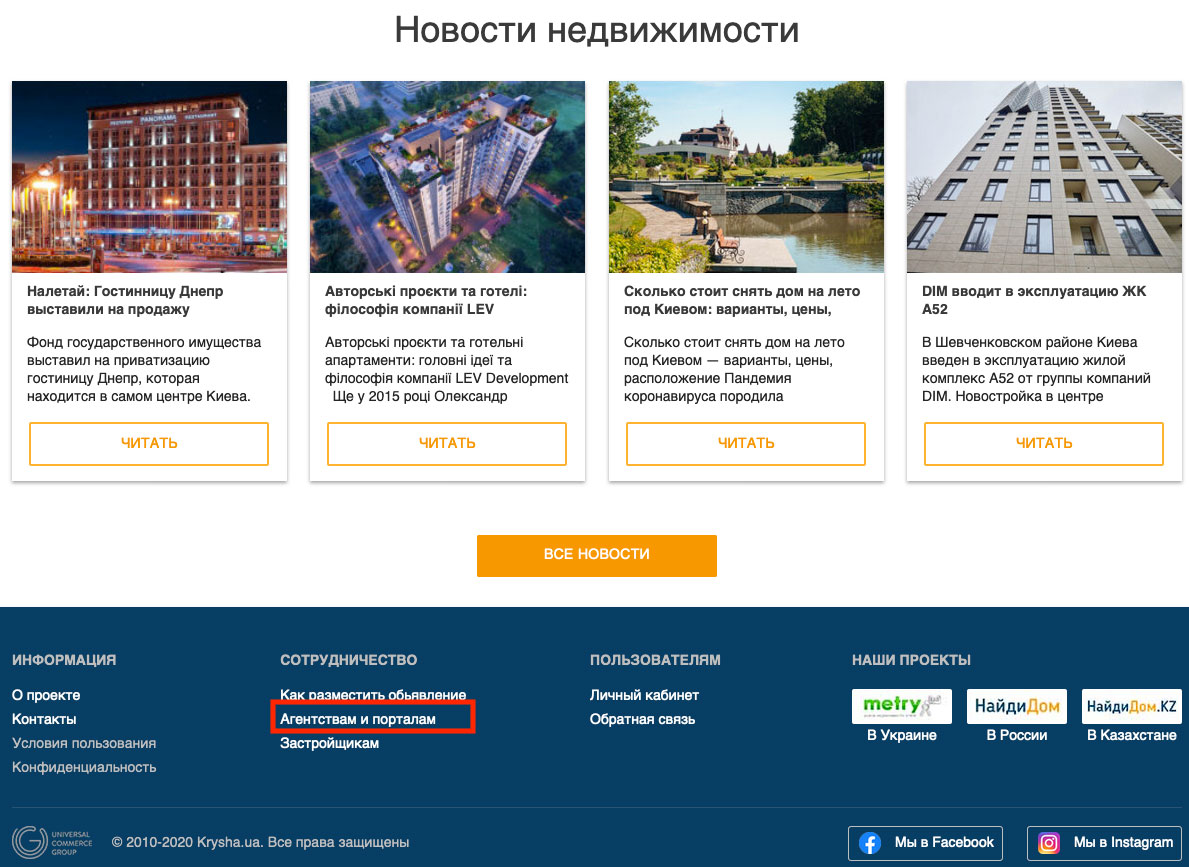 - Перейти на сайт krysha.ua и внизу найти ссылку «Агентствам и порталам» (Рис.871).