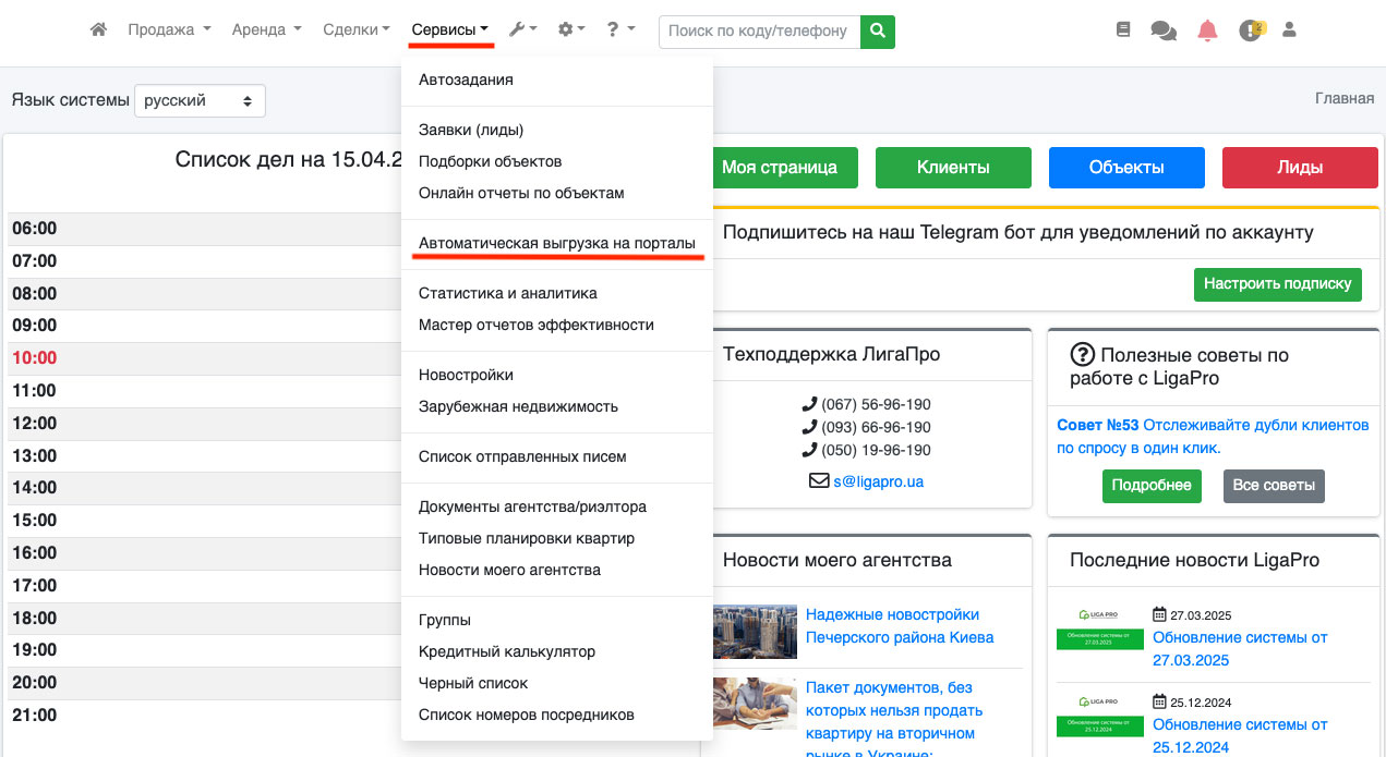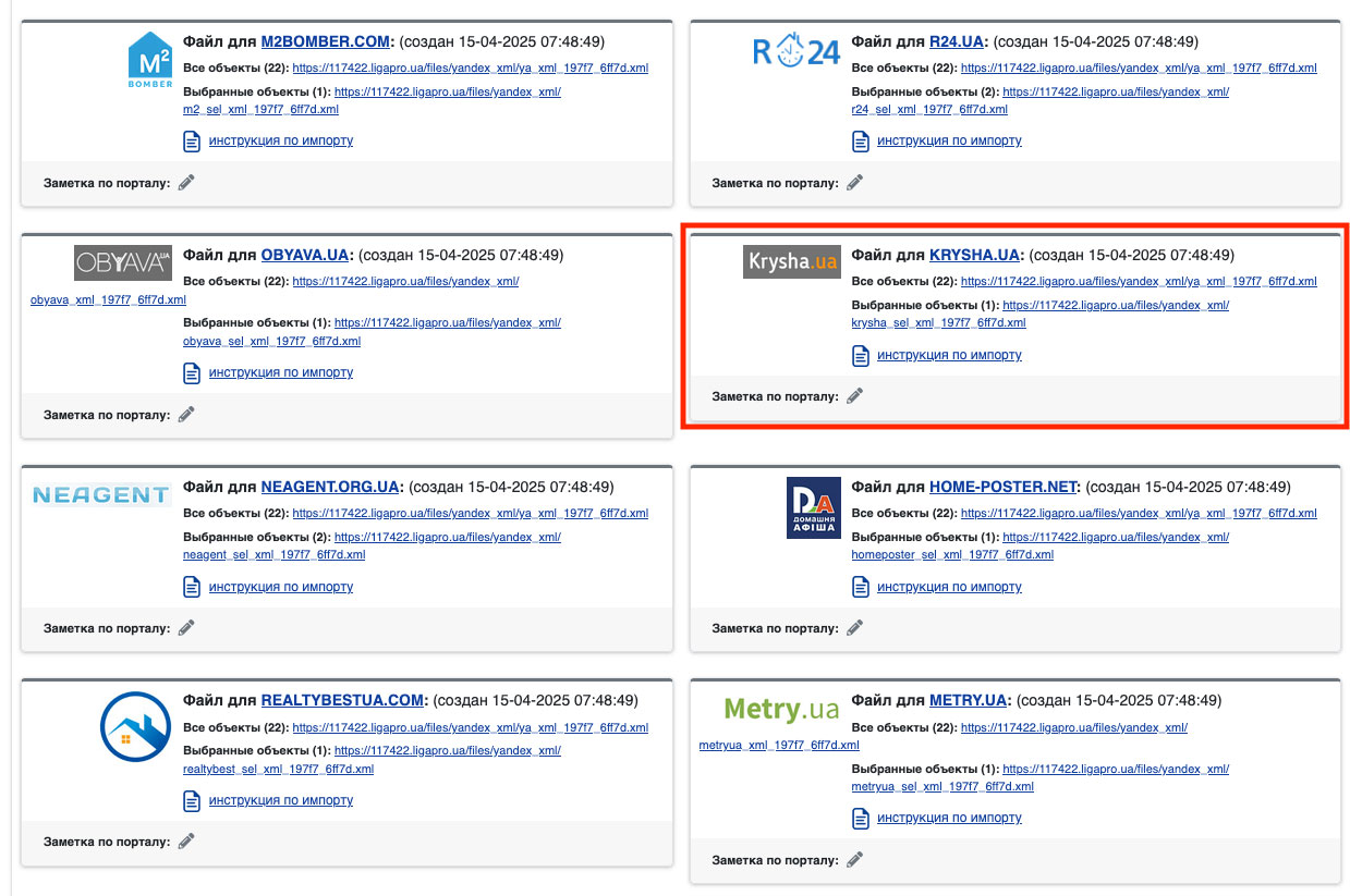 В системе ЛигаПро существует возможность автоматической выгрузки объектов на портал krysha.ua.