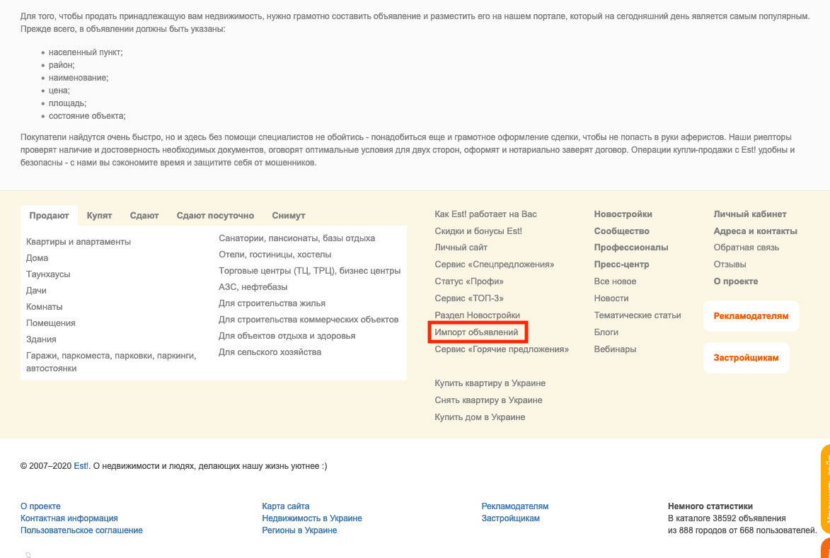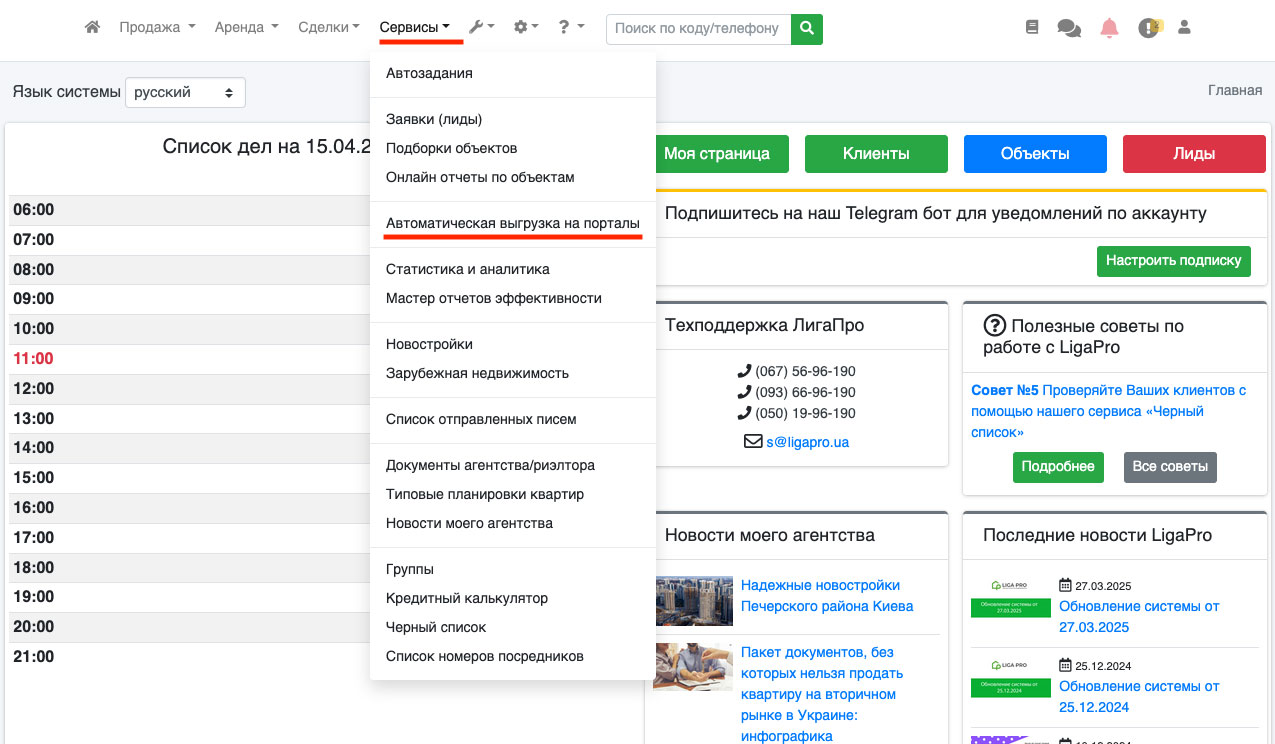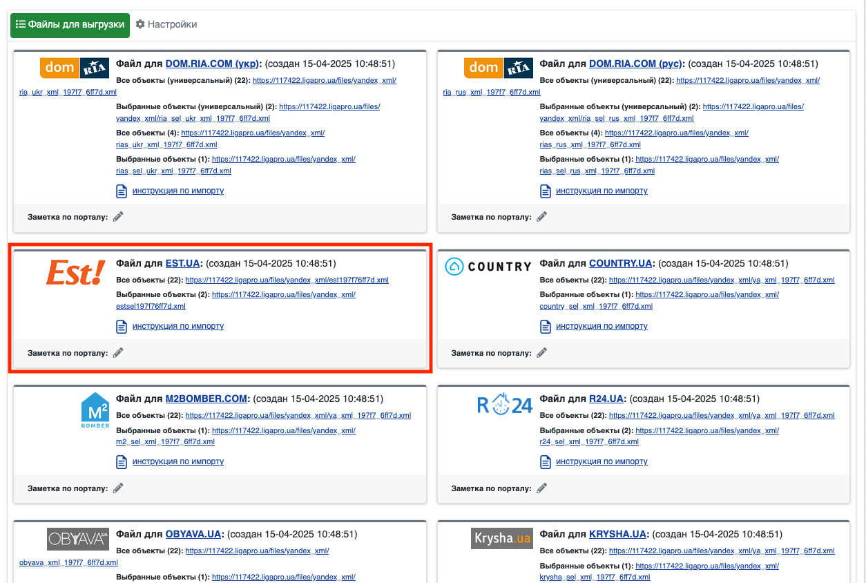 В системе ЛигаПро существует возможность автоматической выгрузки объектов на портал est.ua.