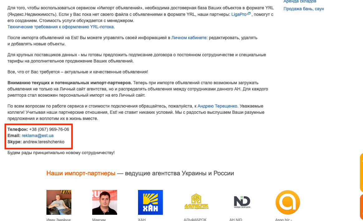 - Отправить ссылку на Ваш фид необходимо менеджеру est.ua Терещенко Андрею на почту reklama@est.ua, поскольку именно он занимается интеграцией пользователей LigaPro на est.ua. Текст письма: «Прошу привязать мой XML файл к Вашему сайту. Ссылка на файл http://corp.ligapro.ua/files/yandex_xml/ya_xml_c4ca4_02e74.xml».