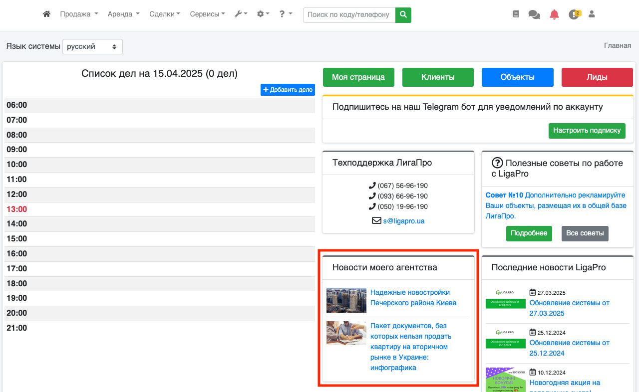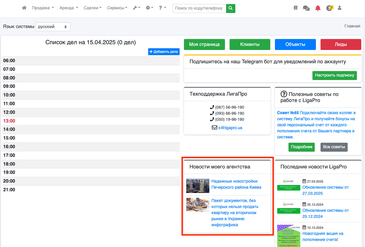 Если Вы все сделали правильно, новость будет отображаться на главной странице системы (Рис. 932).