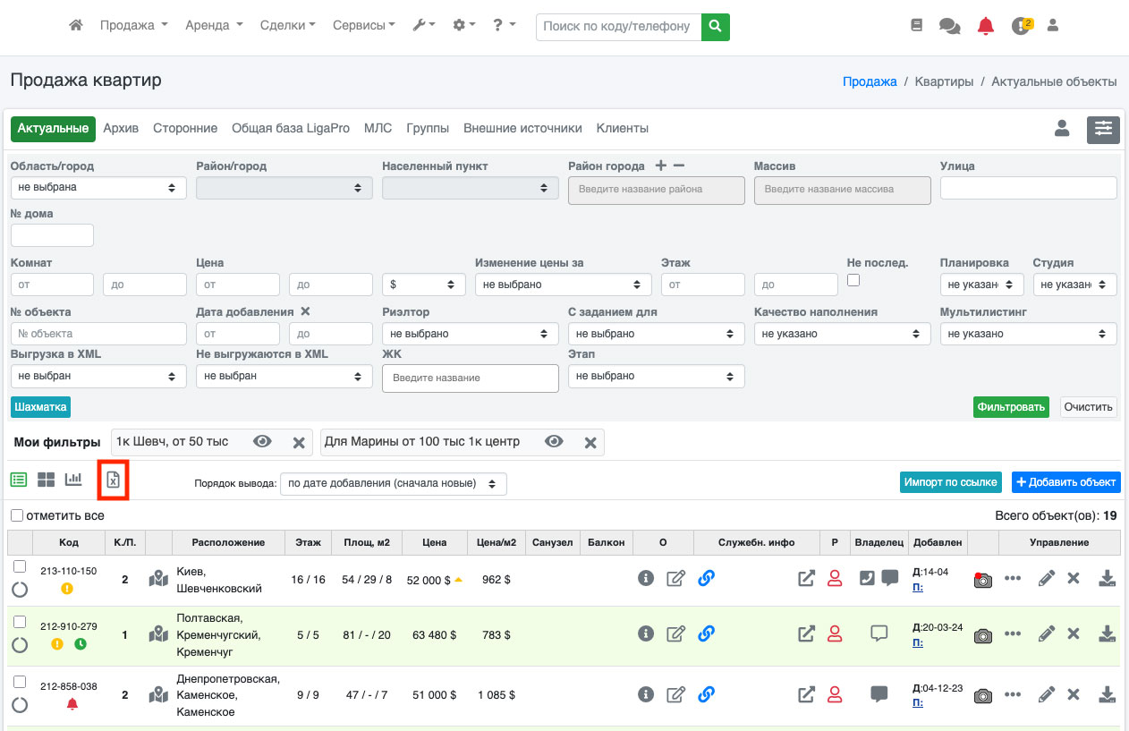 Например, сначала в фильтре выберите однокомнатные объекты, отфильтруйте и скачайте выборку, затем укажите двухкомнатные и повторите выгрузку. Таким образом вы сможете скачать все нужные вам объекты.