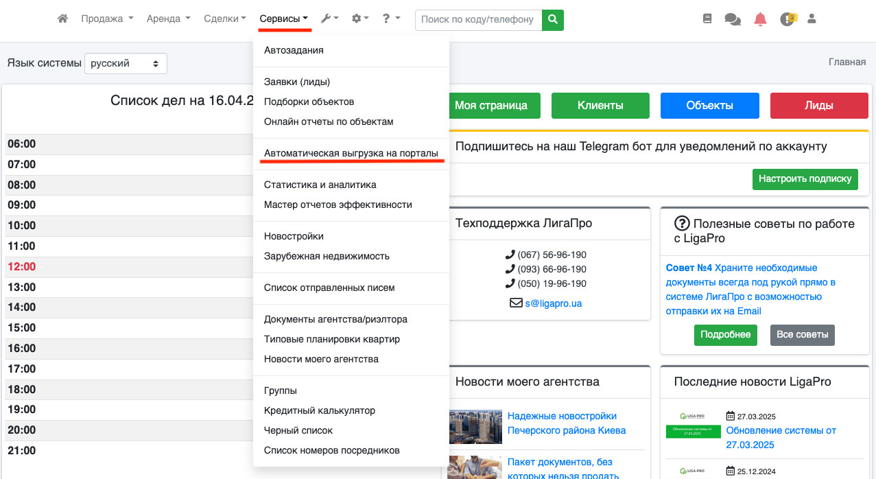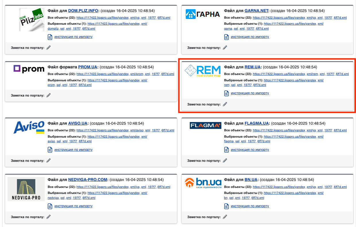 В системі ЛігаПро існує можливість автоматичної вигрузки об'єктів на портал rem.ua.