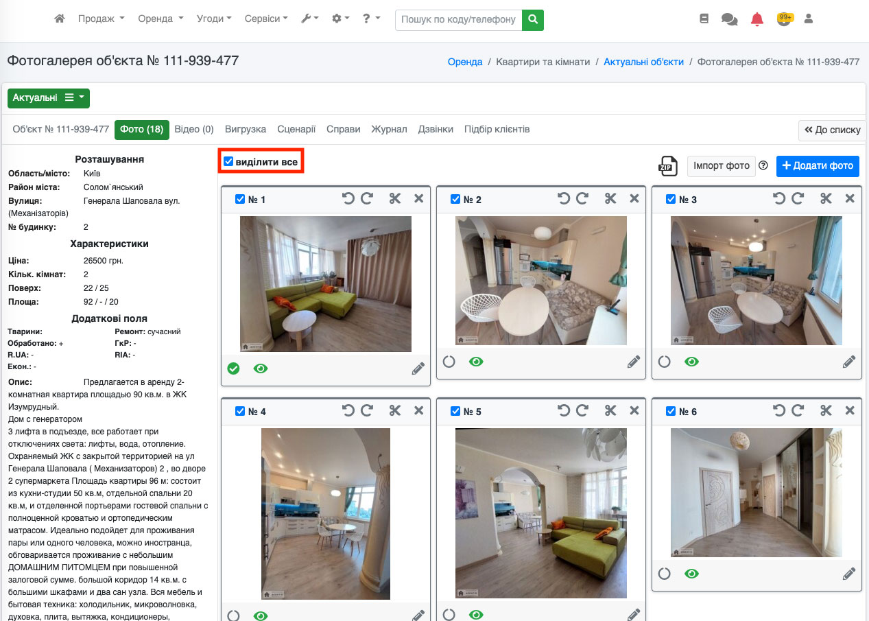Якщо Ви хочите видалити кілька окремих фото, просто поставте галочки біля потрібних фото (Рис. 1097) і після цього натисніть на кнопку «Видалити виділені».