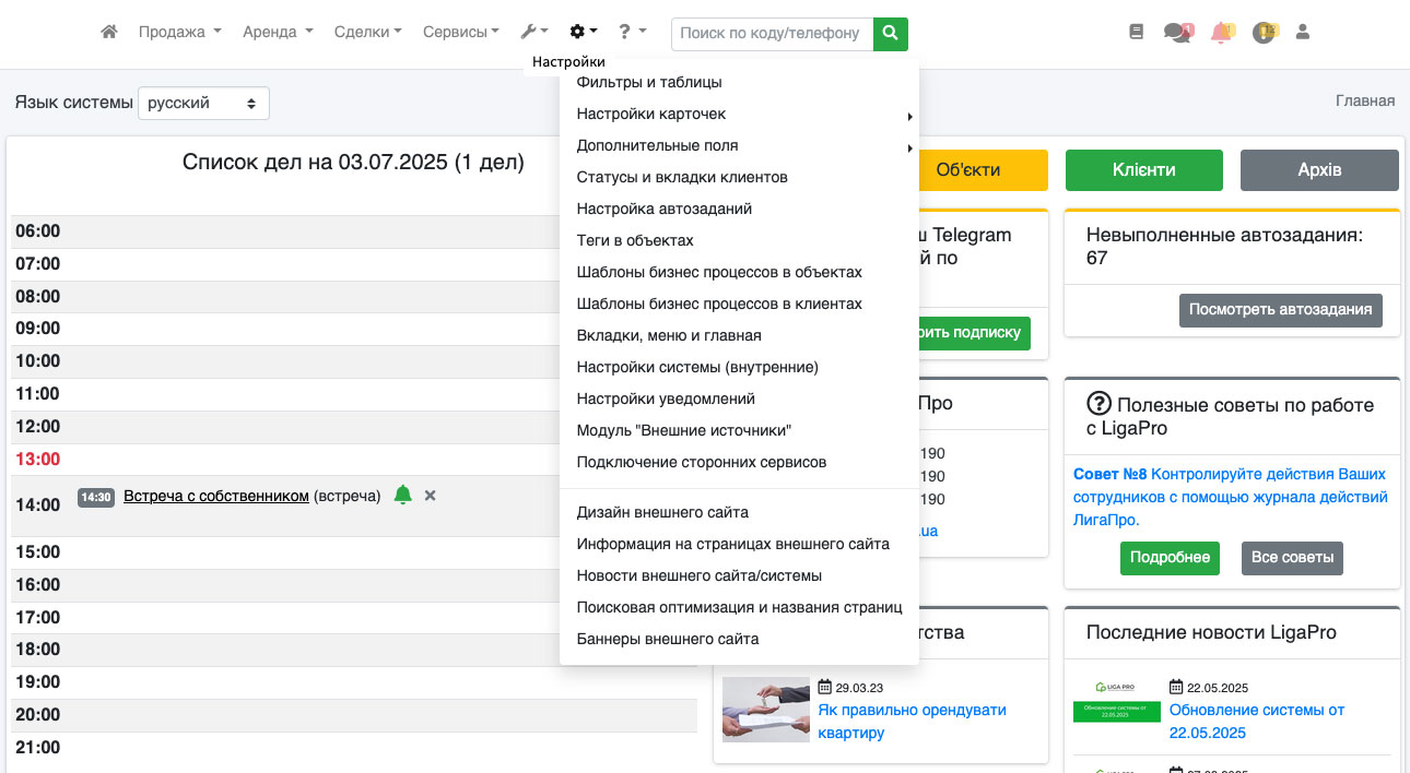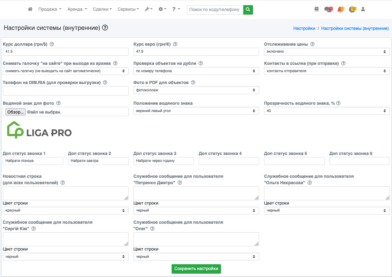 Додатково Ви можете налаштувати, які контакти будуть відображатися у посиланні та вигляд сторінки презентації. Для цього перейдіть у пункт «Налаштування - Налаштування системи (внутрішні)» (Рис. 1110).