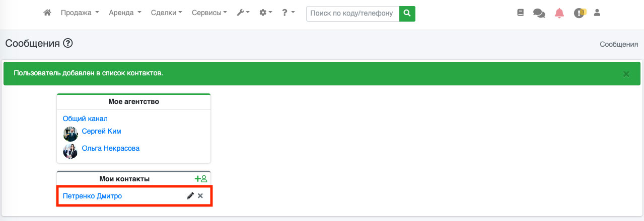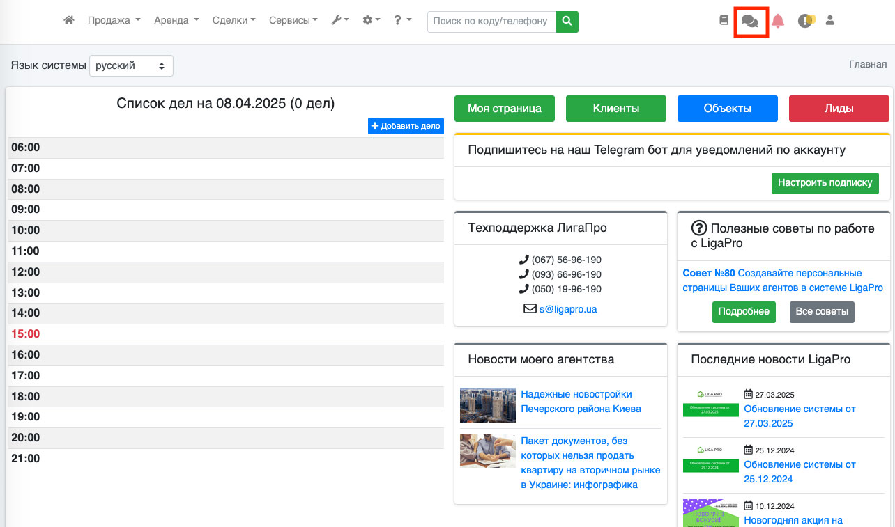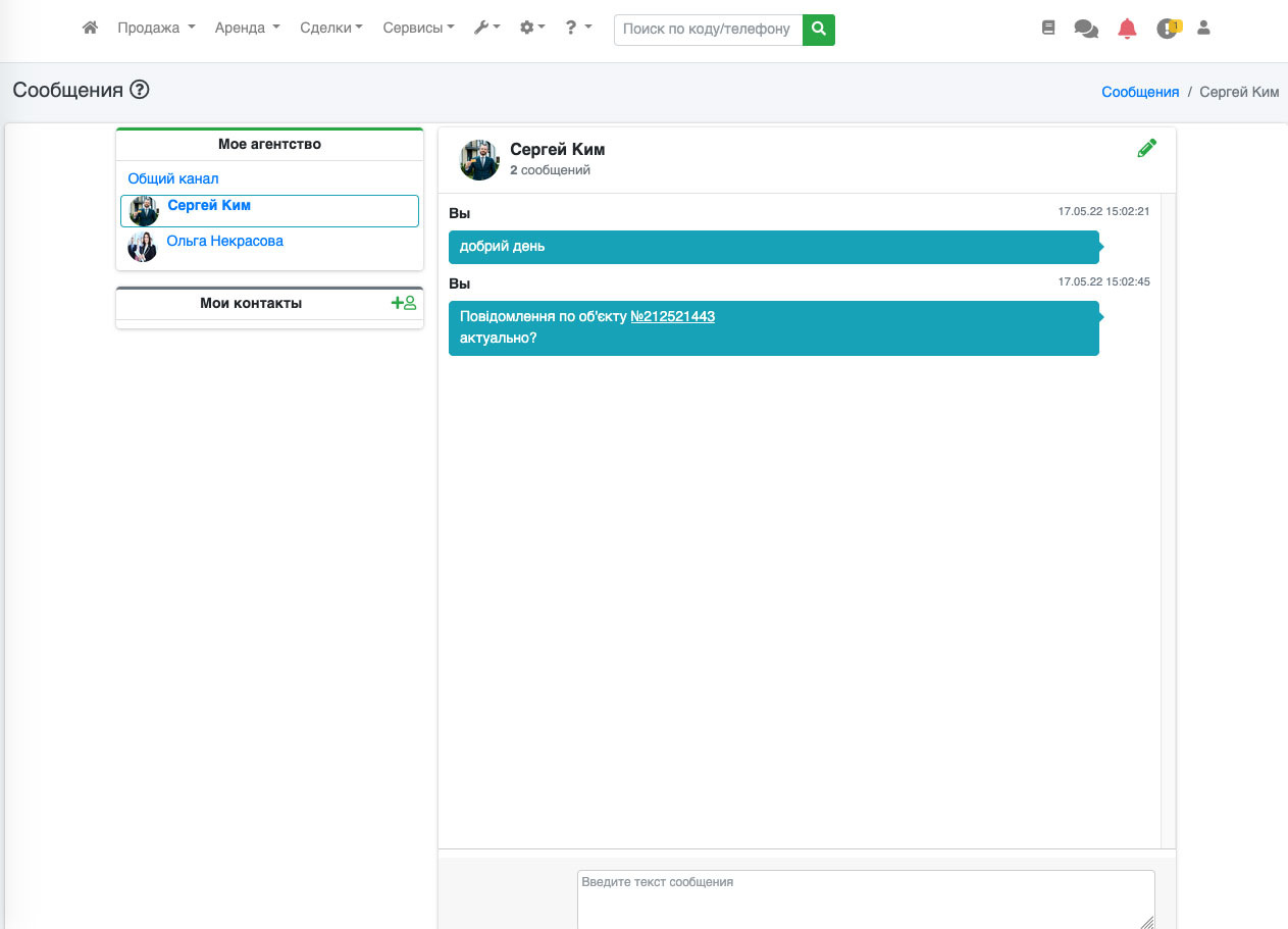 Ви можете відправити повідомлення конкретному користувачу або відразу всім користувачам свого акаунта через загальний канал. Ви можете переглядати історію листування. Сповіщення про нове повідомлення з'являється в правому верхньому куті екрану (Рис. 83).