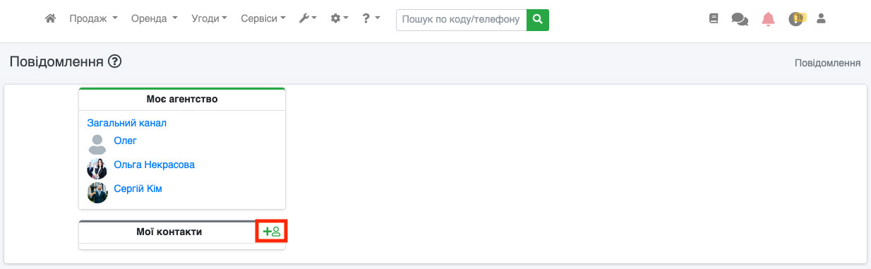 Ви можете відправити повідомлення конкретному користувачу або відразу всім користувачам свого акаунта через загальний канал. Ви можете переглядати історію листування. Сповіщення про нове повідомлення з'являється в правому верхньому куті екрану (Рис. 83).