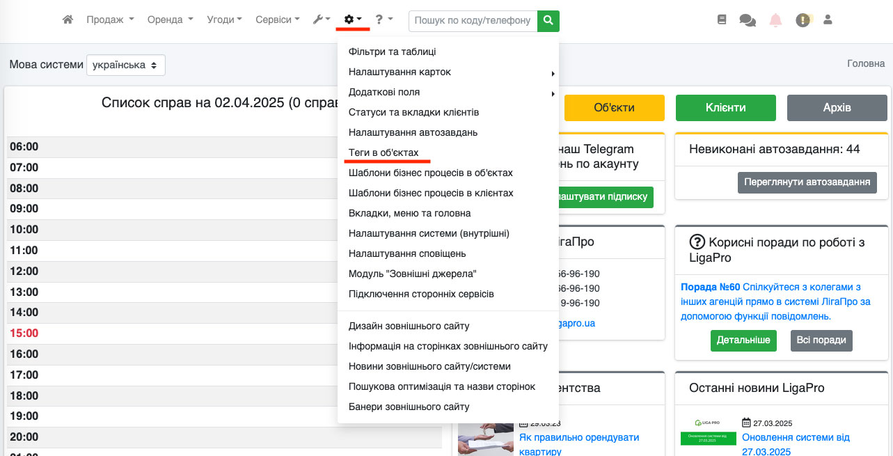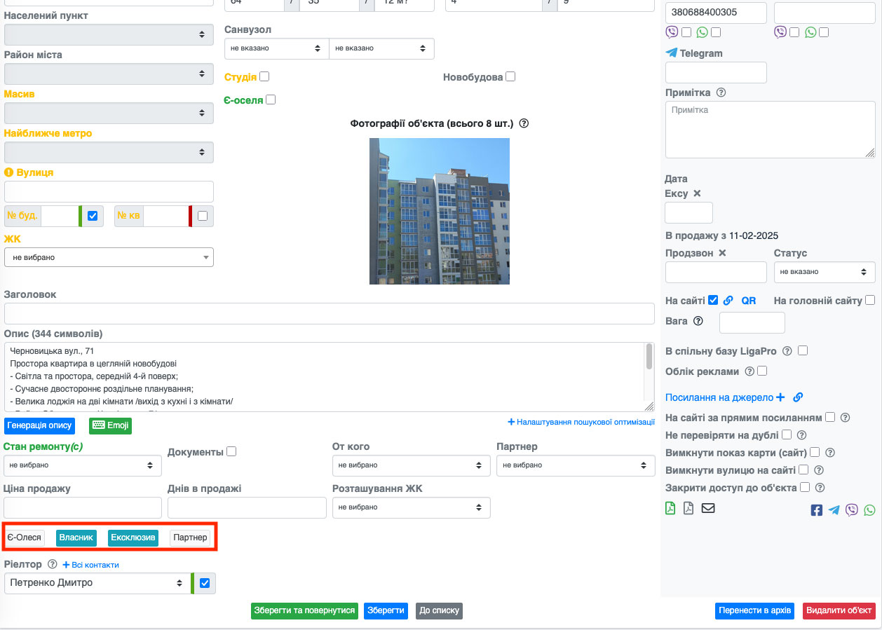 Після того, як Ви додали теги, Ви можете зайти в редагування об'єкта в потрібній рубриці (Рис. 1147, Рис. 1148).