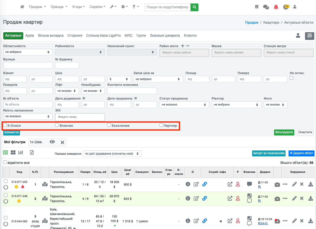 Також, якщо Ви в тегах вказували параметр «виводити в фільтрах», то у Вас в списку об'єктів в фільтрах з'явиться цей тег, за яким можна здійснювати фільтрацію (Рис. 1151).
