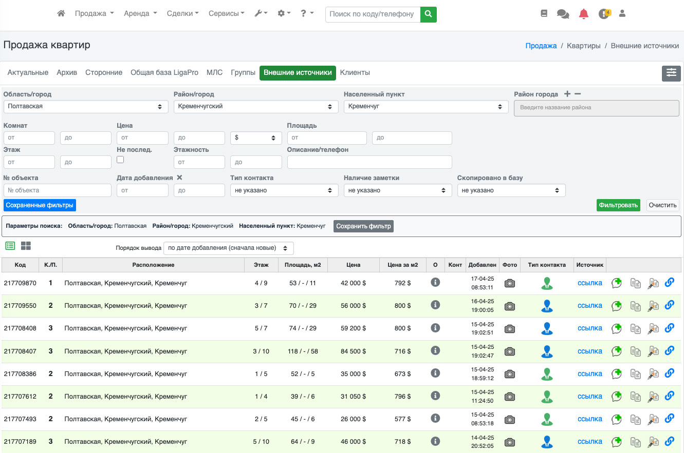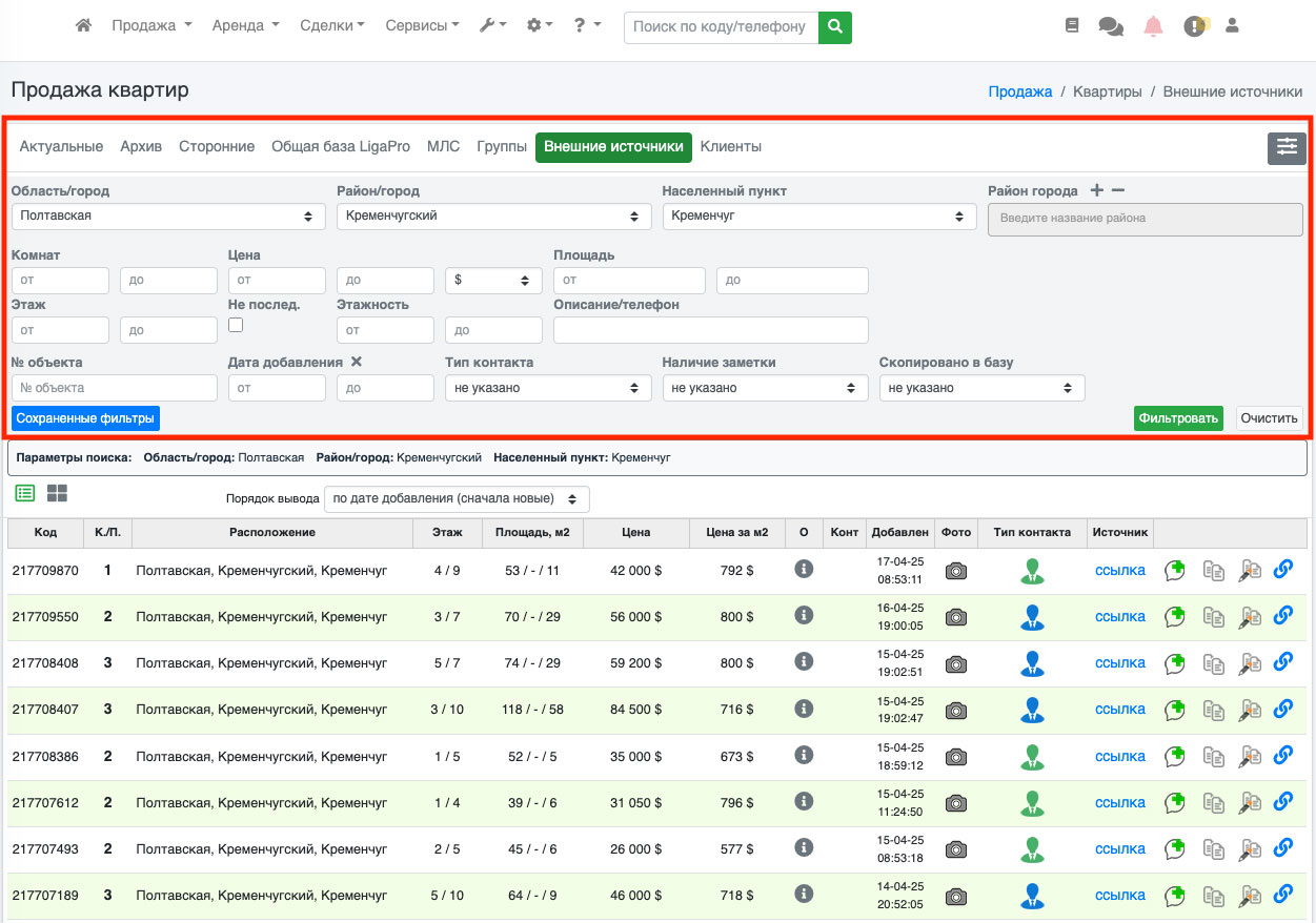 Перейдите во внешние источники, задайте параметры поиска и нажмите «фильтровать» (Рис. 1196).