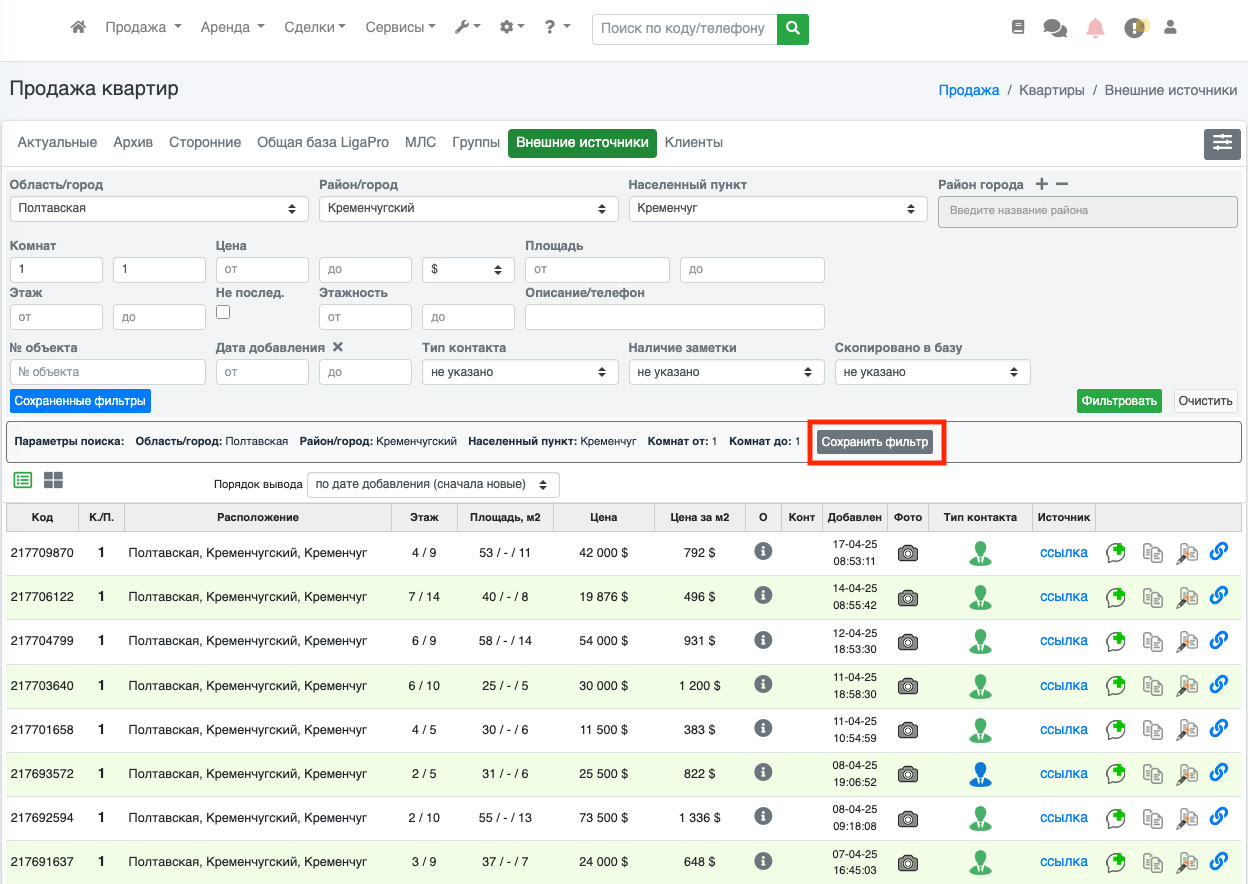 У Вас отобразятся результаты поиска. Если Вы хотите сохранить фильтр, то Вам необходимо нажать на кнопку «Сохранить фильтр» (Рис. 1197).