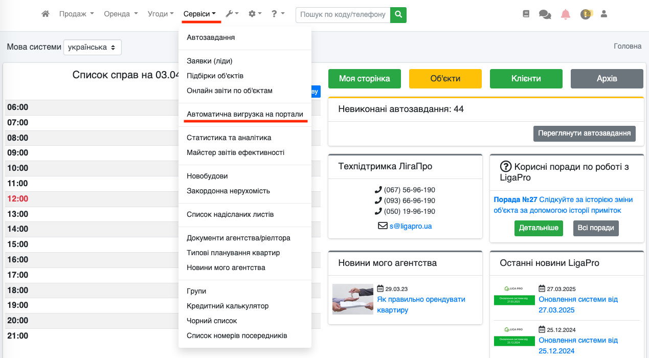 Щоб знайти посилання на Ваш XML файл в системі - перейдіть в пункт «Сервіси - Автоматична вивантаження на портали» (Рис. 1202).