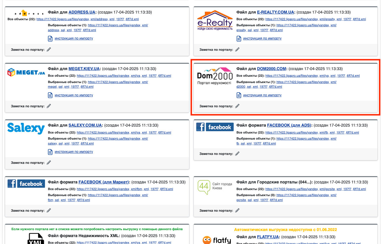 - На почту info@dom2000.com необходимо отправить письмо с того e-mail, с которого Вы регистрировались на сайте dom2000.com. Текст письма: «Прошу привязать мой XML файл к Вашему сайту. Ссылка на файл http://corp.ligapro.ua/files/yandex_xml/ya_xml_c4ca4_02e74.xml ». Дополнительно Вы можете связаться с менеджером сайта по телефону 044 383-77-41 или по скайпу «dom2000.com».