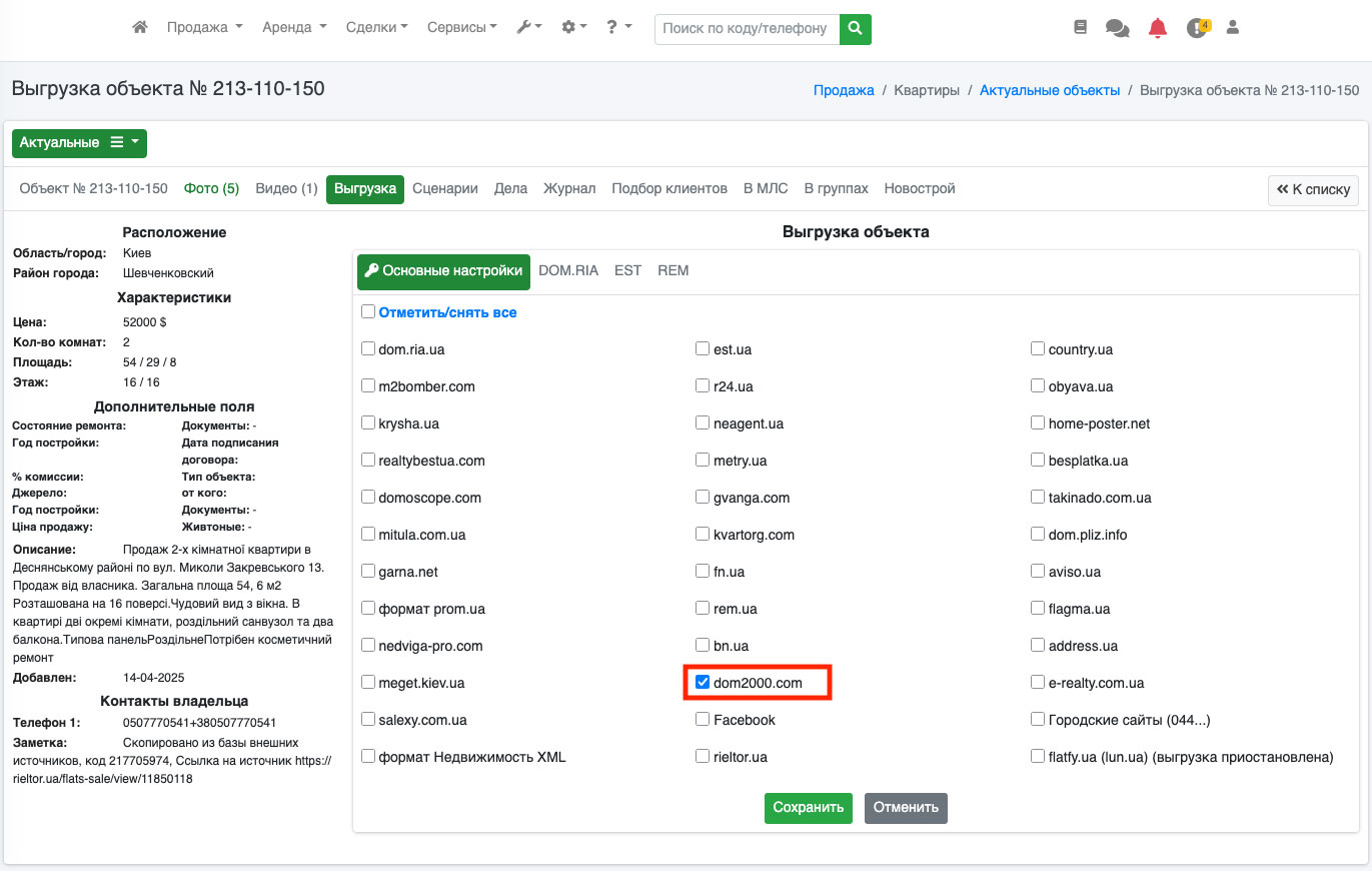 Для того, чтобы настроить выгрузку на портал dom2000.com необходимо выполнить следующие действия: