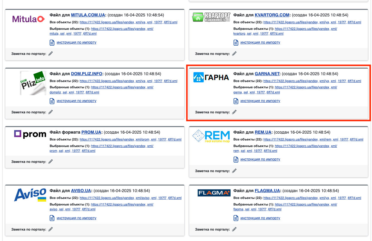 - После указания ссылки нажмите на кнопку «Сохранить» и если Вы все сделали правильно - выгрузка будет настроена (Рис. 1086). На этом настройка импорта завершена. Чтобы узнать условия выгрузки Вы можете связаться с менеджером портала Светлана Пешко +38 (093) 365-59-89 sp@address.com.ua