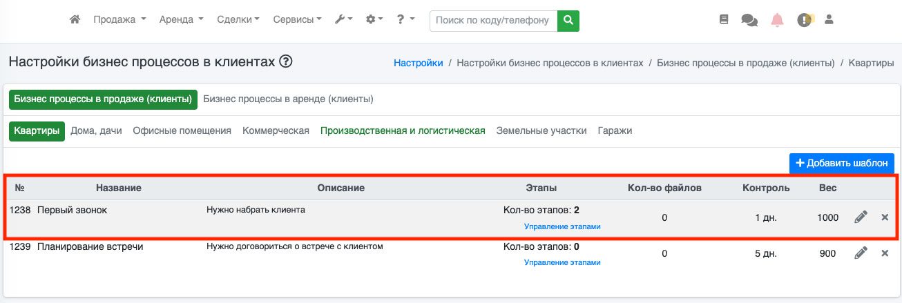 Если Вы все сделали правильно - у Вас появится новый шаблон/этап (Рис. 1346). Таким образом, Вы можете добавить все нужные этапы воронки продаж.