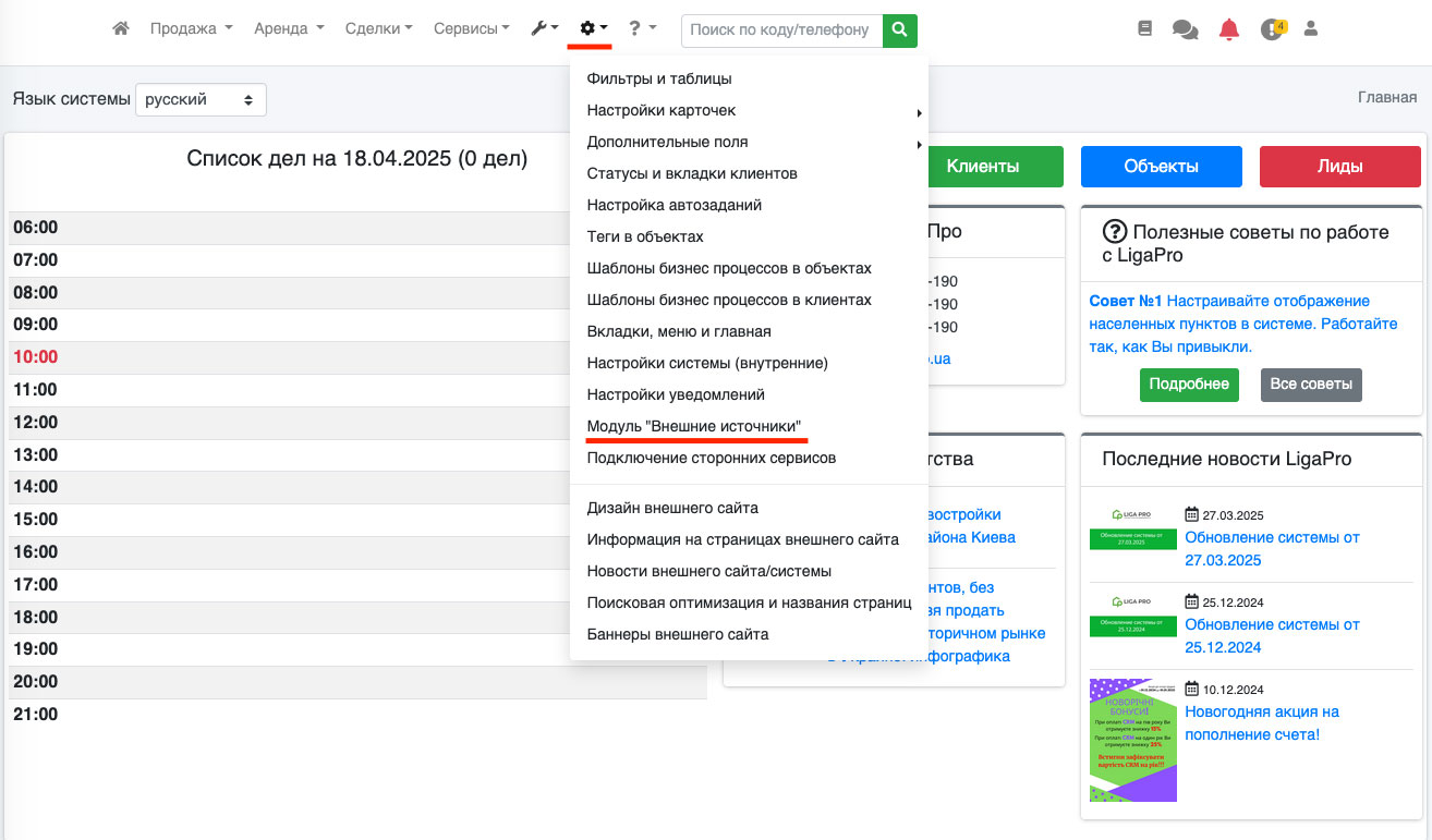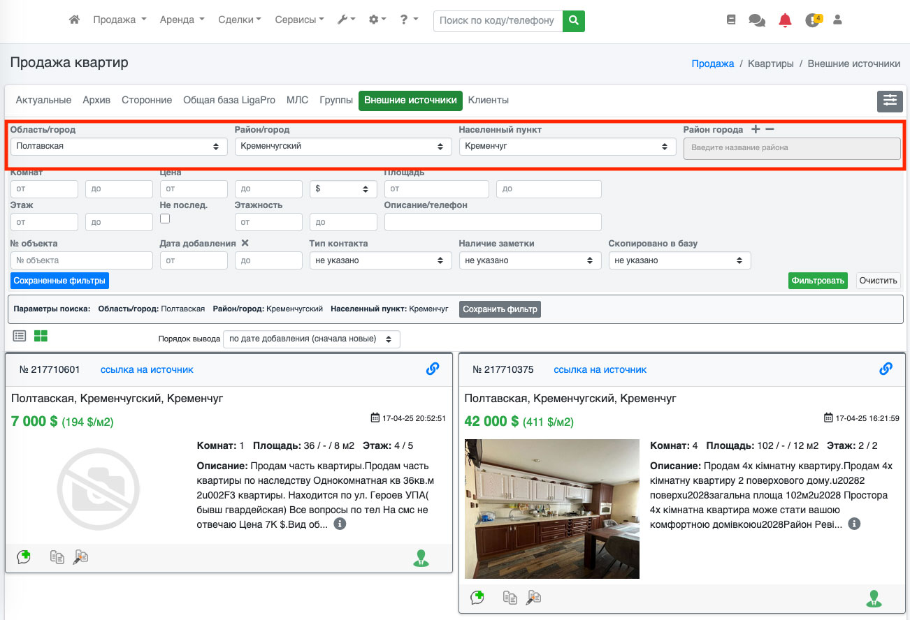 Если Вы все сделали правильно, то при переходе во внешние источники в любой рубрике у Вас в фильтре сразу будет высвечиваться тот город, который Вы указали (Рис. 1377).