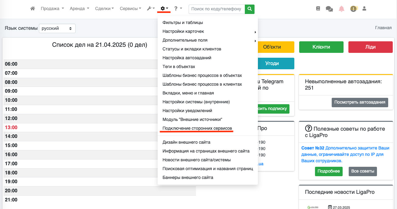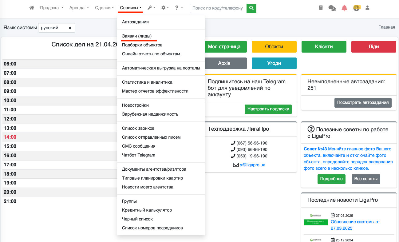 Перейдіть на вкладку «Сервіси-Заявки/Ліди» (Рис. 1542).