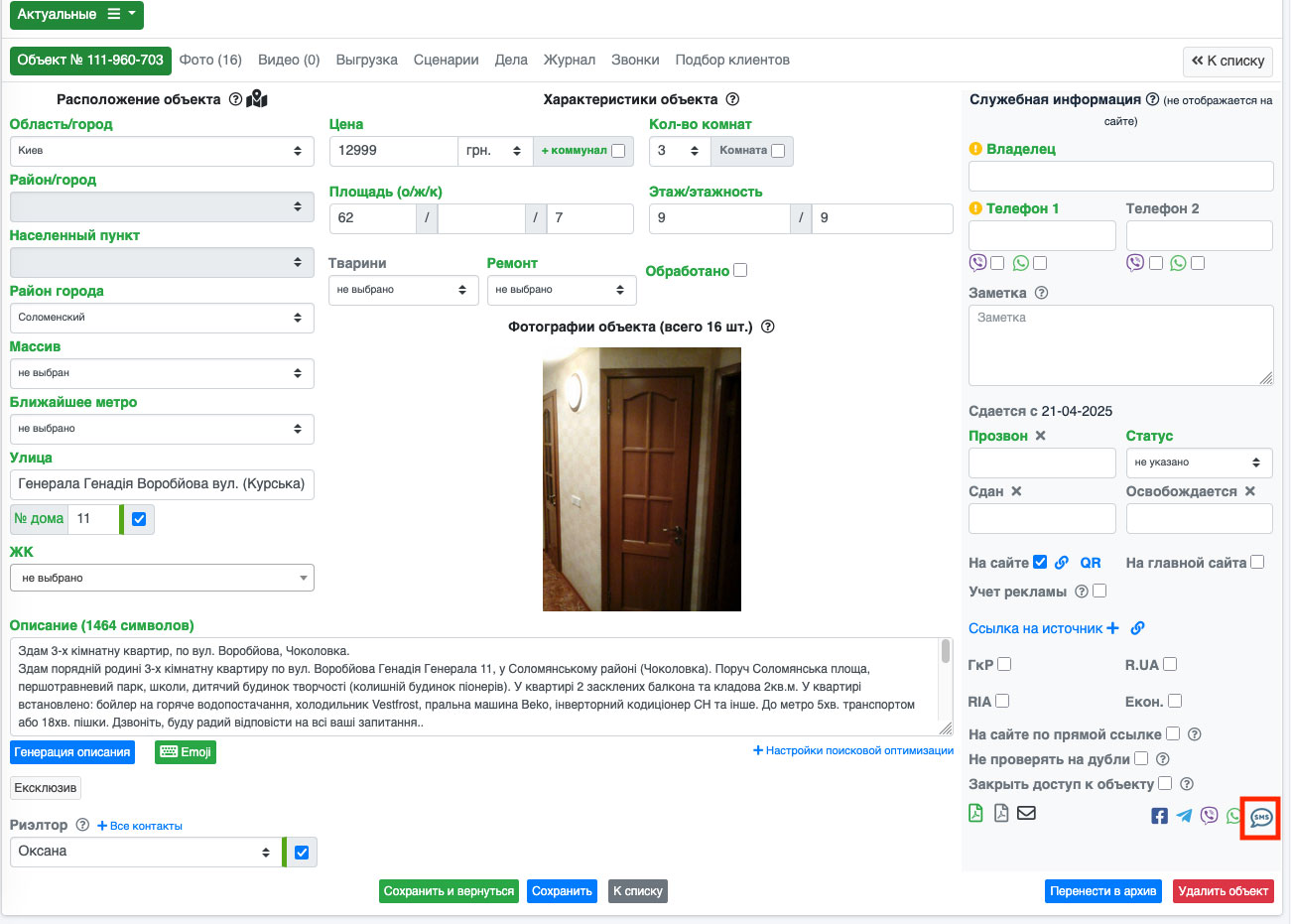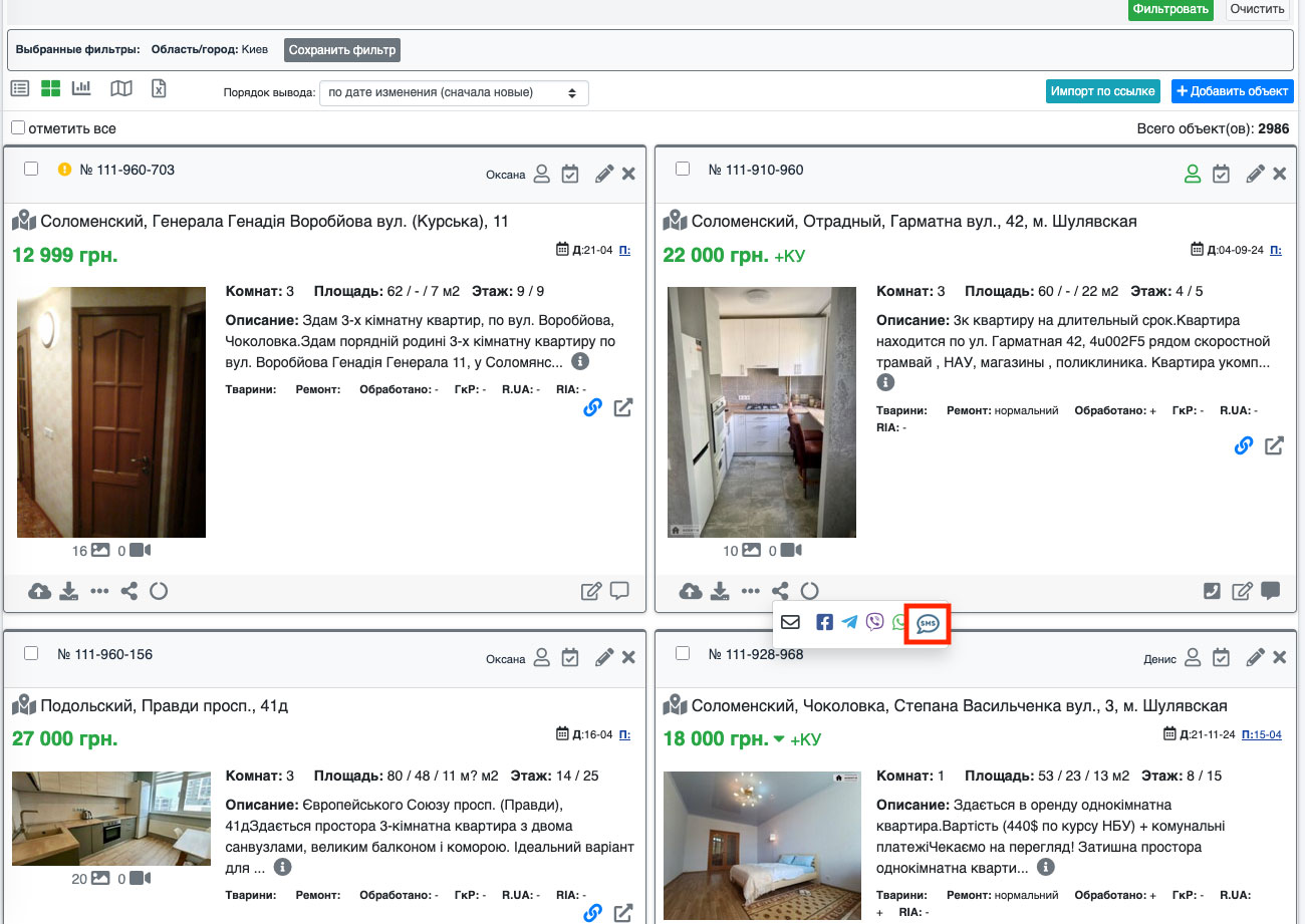 Для зручності буде прикріплено посилання на об'єкт, щоб Ви могли за необхідності вставити його у повідомлення та надіслати клієнту.