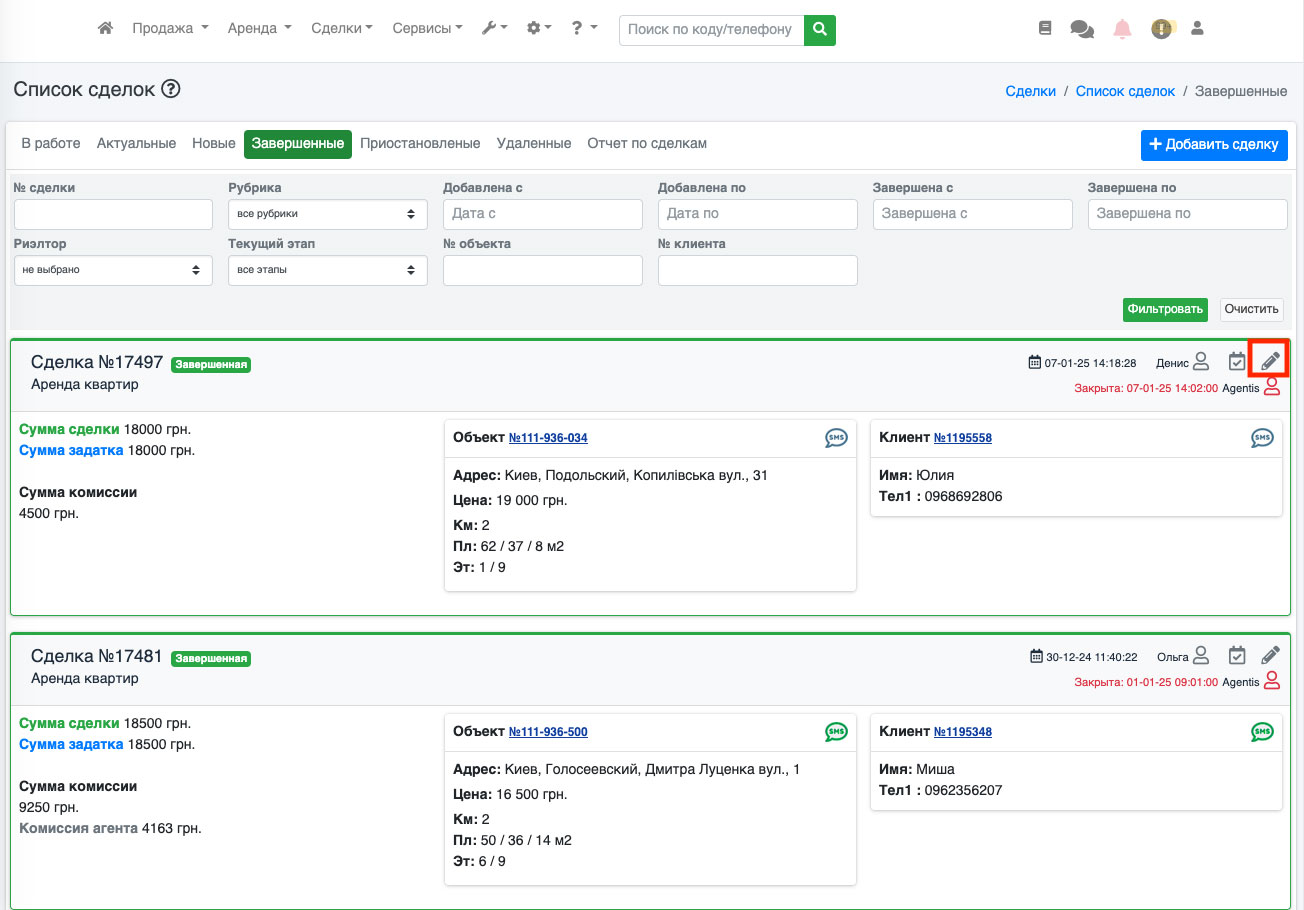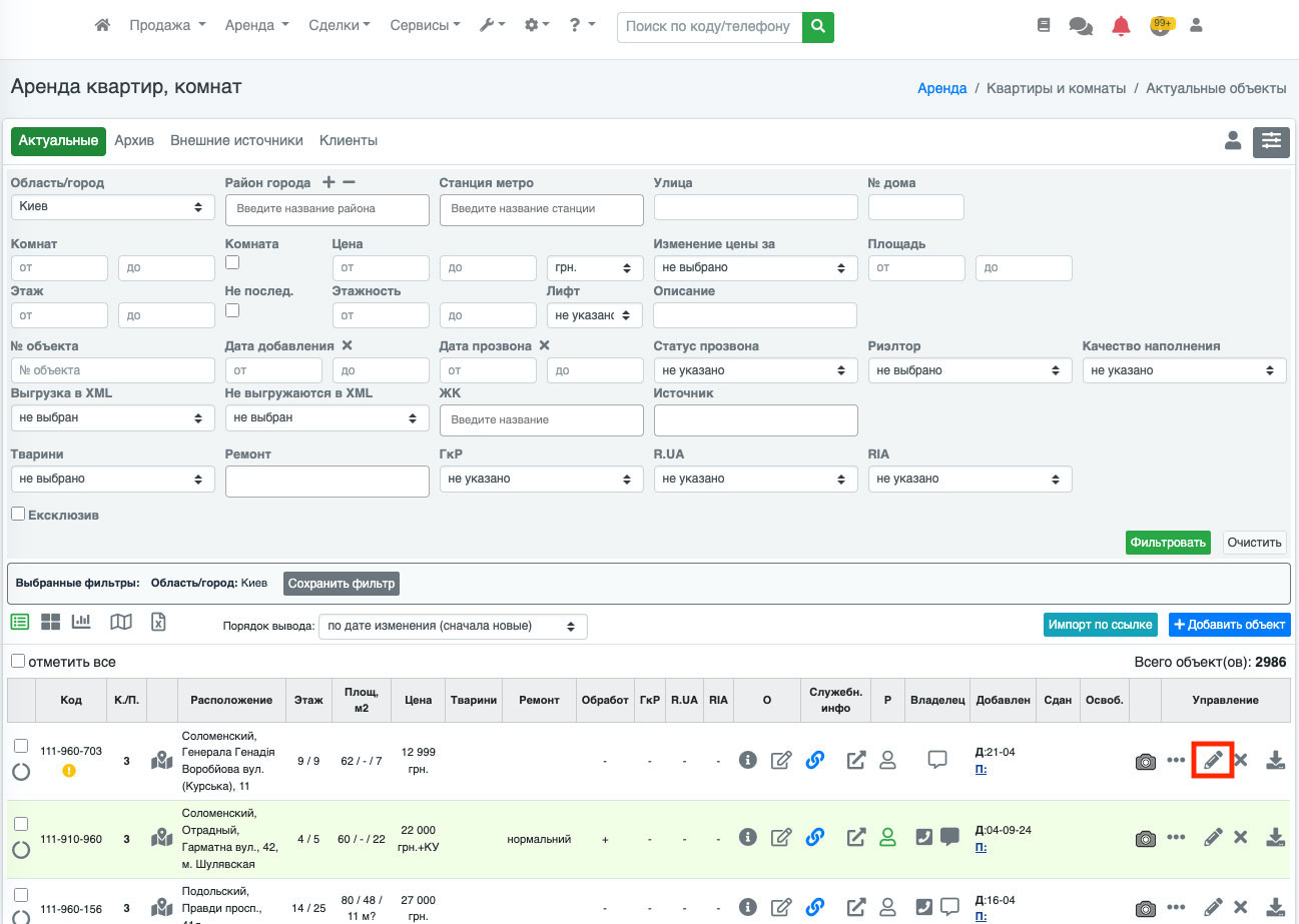 Перейдіть до редагування об'єкта. Для цього натисніть іконку «Олівець» на потрібному об'єкті (Рис. 1528, Рис. 1529).