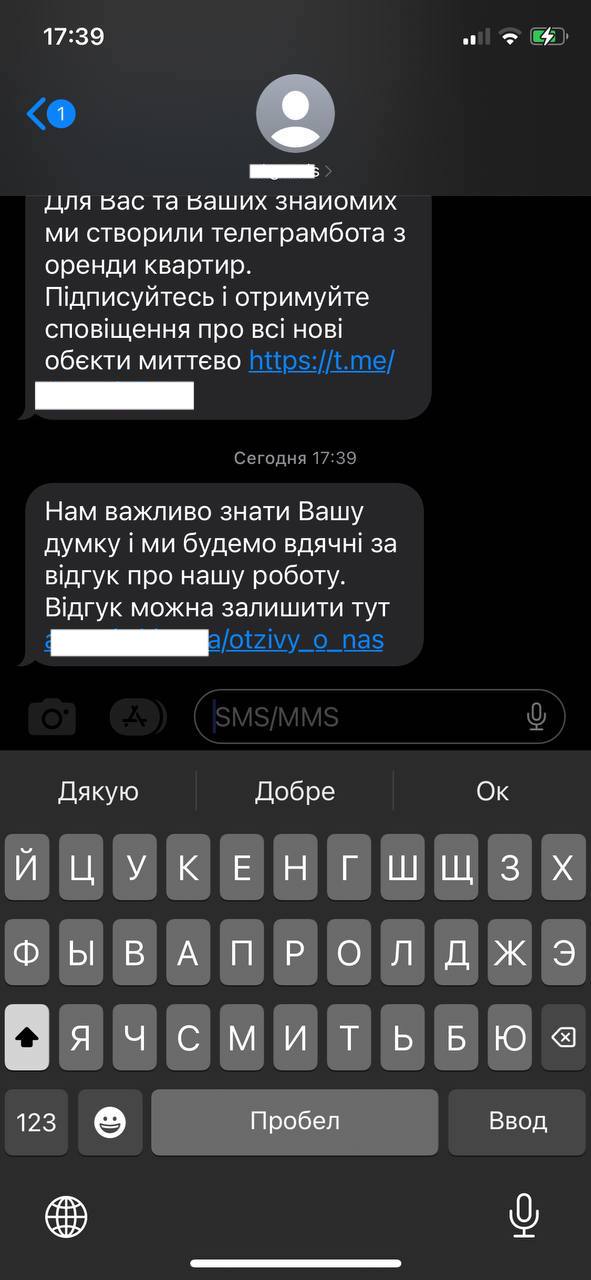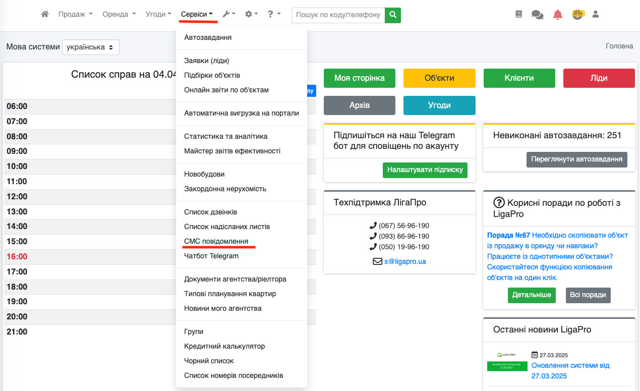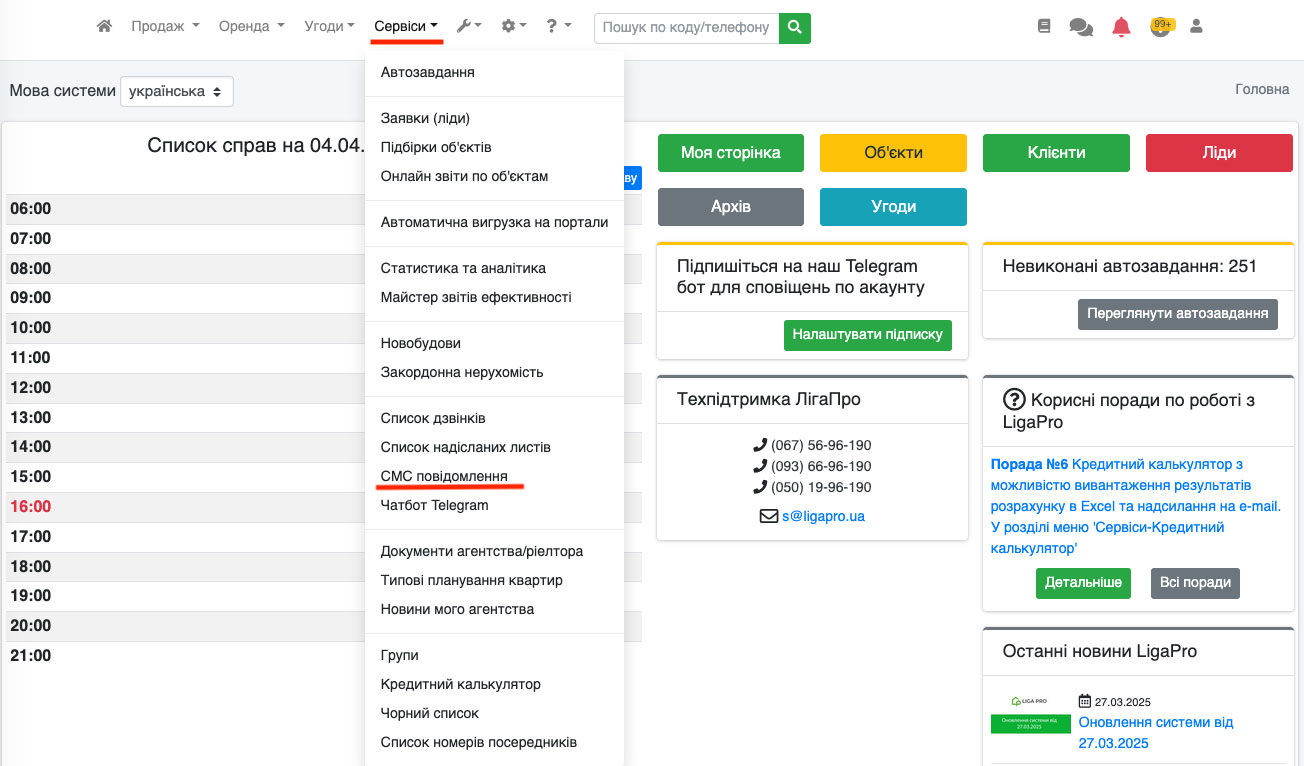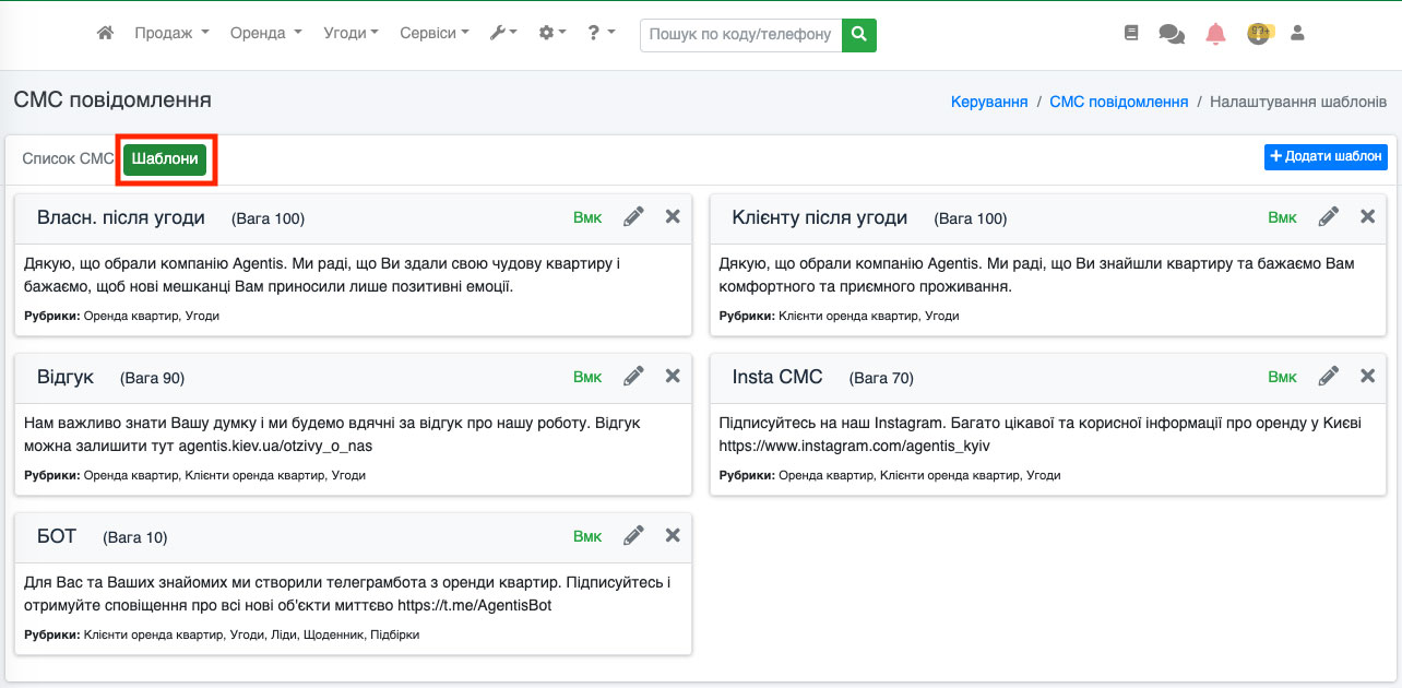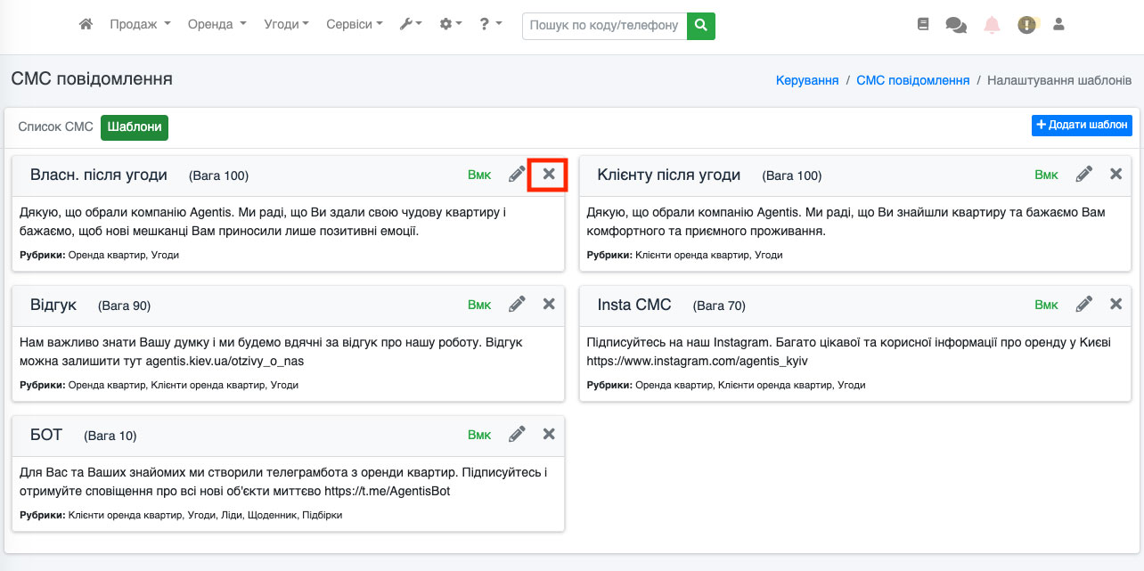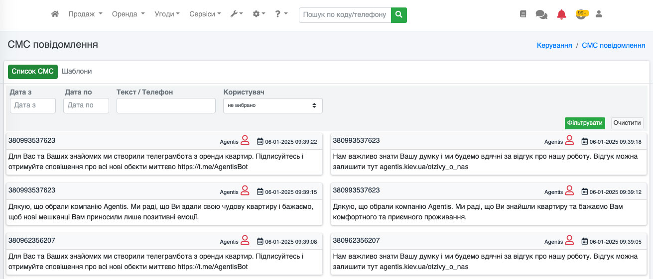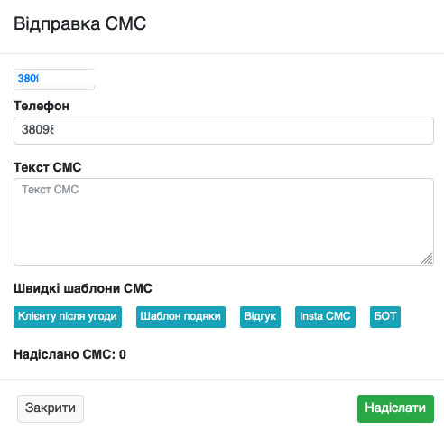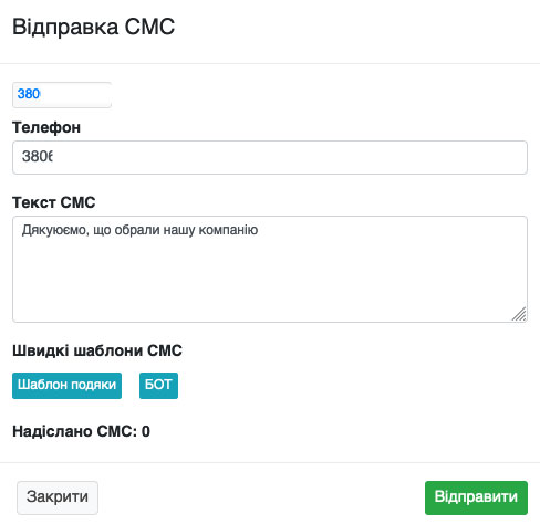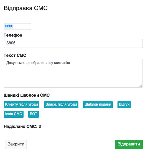 Відправка СМС із угод