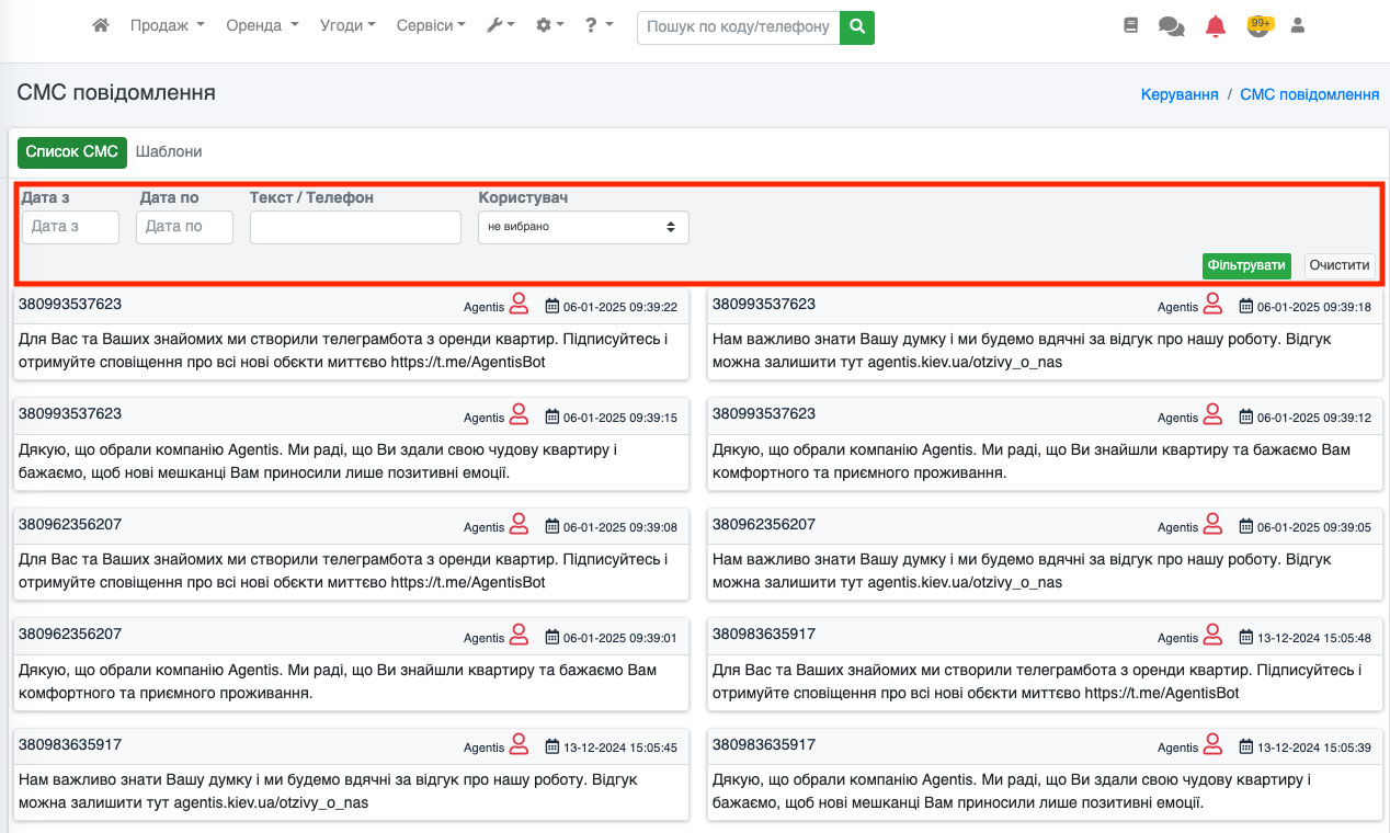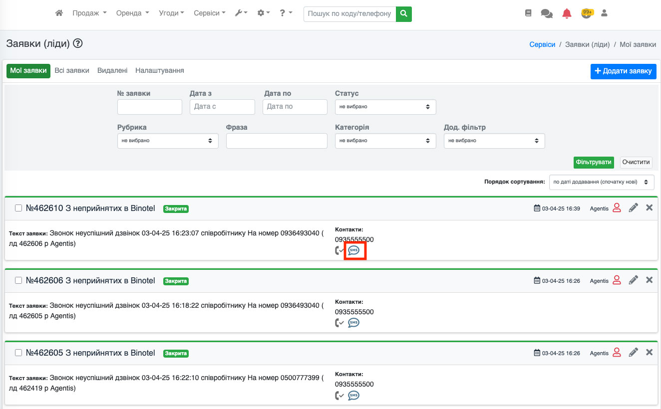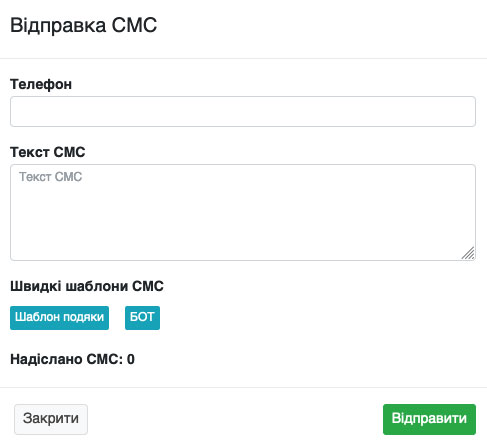 Надсилання СМС із заявок