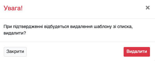 Ви можете у будь-який момент видалити шаблон. Для цього у списку шаблонів біля потрібного шаблону натисніть на іконку «червоний хрестик» (Рис. 1522).