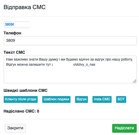 Надсилання СМС з клієнтів