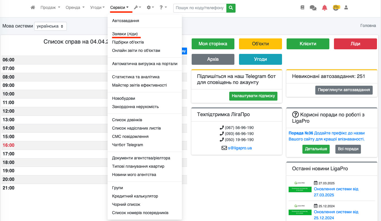 Перейдіть на вкладку «Сервіси-Заявки/Ліди» (Рис. 1542).