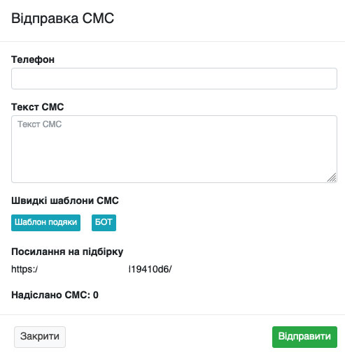 Відправка СМС з підбірок