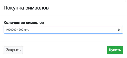 У Вас откроется диалоговое окно в котором Вы можете выбрать, какое количество символов Вы хотите купить. После того как Вы выбрали количество символов, нажмите кнопку купить (Рис. 1640). Средства спишутся с Вашего основного счета в ЛигаПро.
