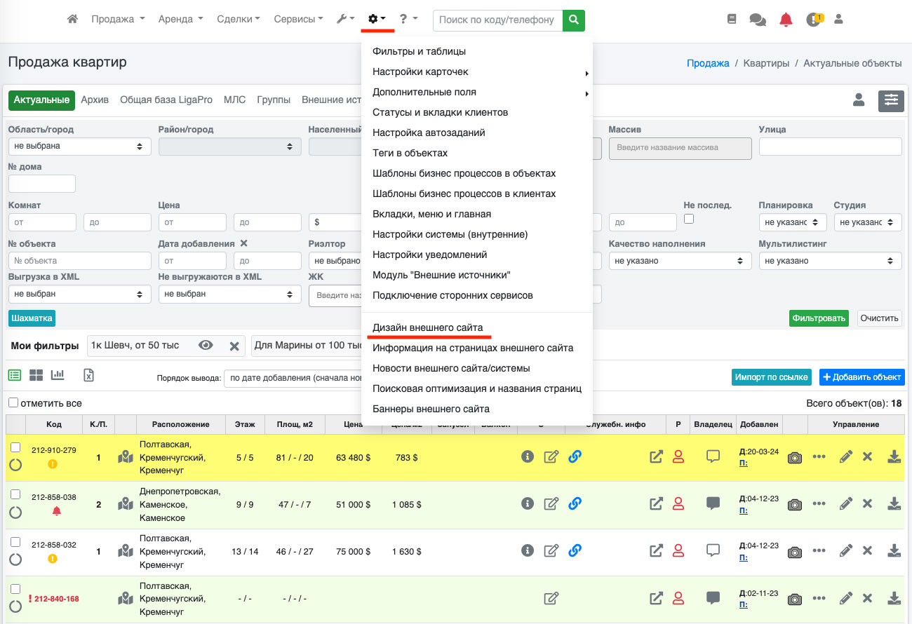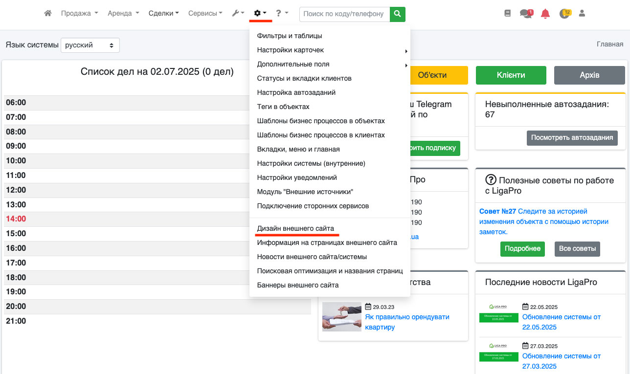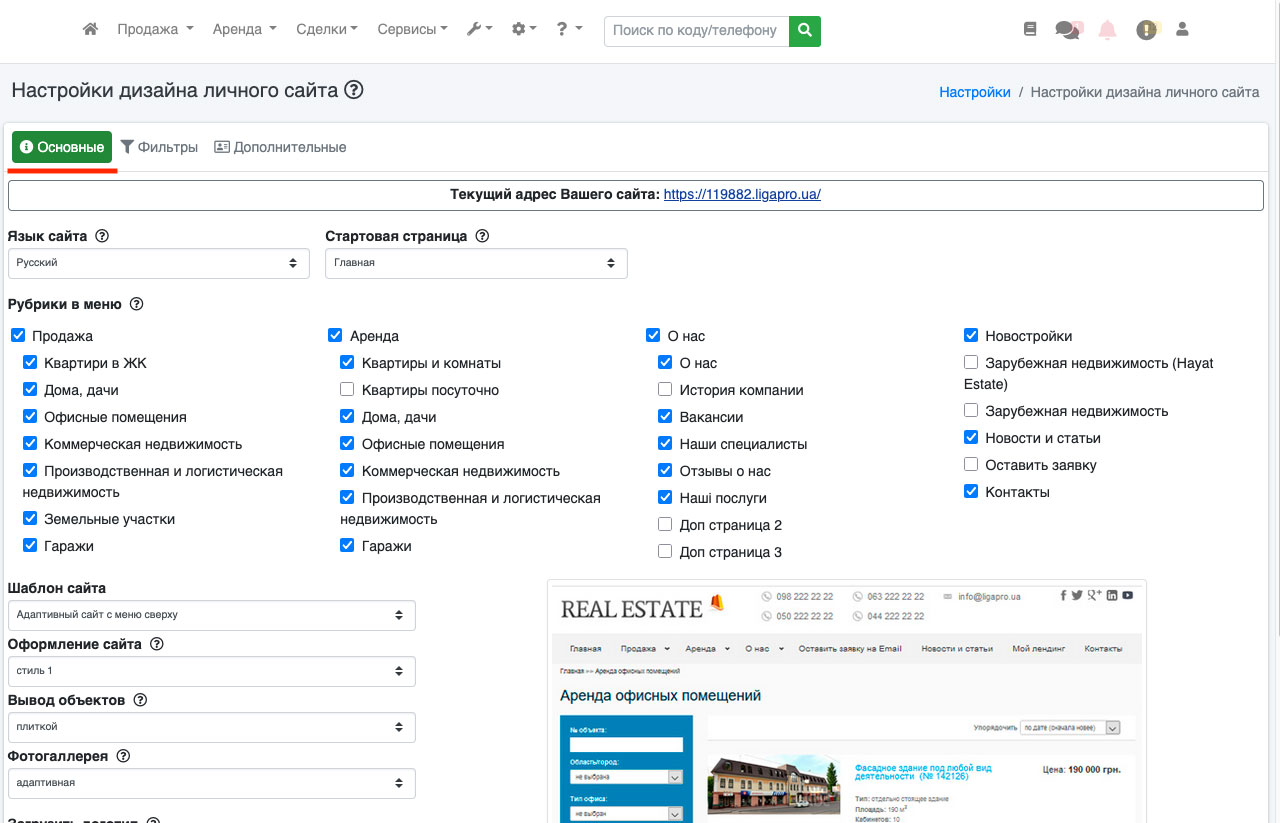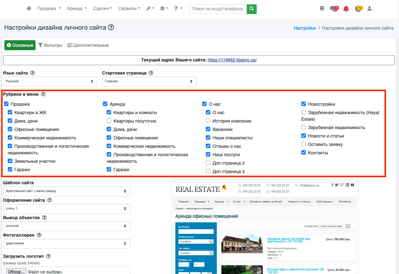 Этот пункт настроек доступен только администратору системы (пользователь который был создан при регистрации системы) или пользователю, которому было предоставлено право на настройку сайта (см. инструкцию «Управление пользователями»).
