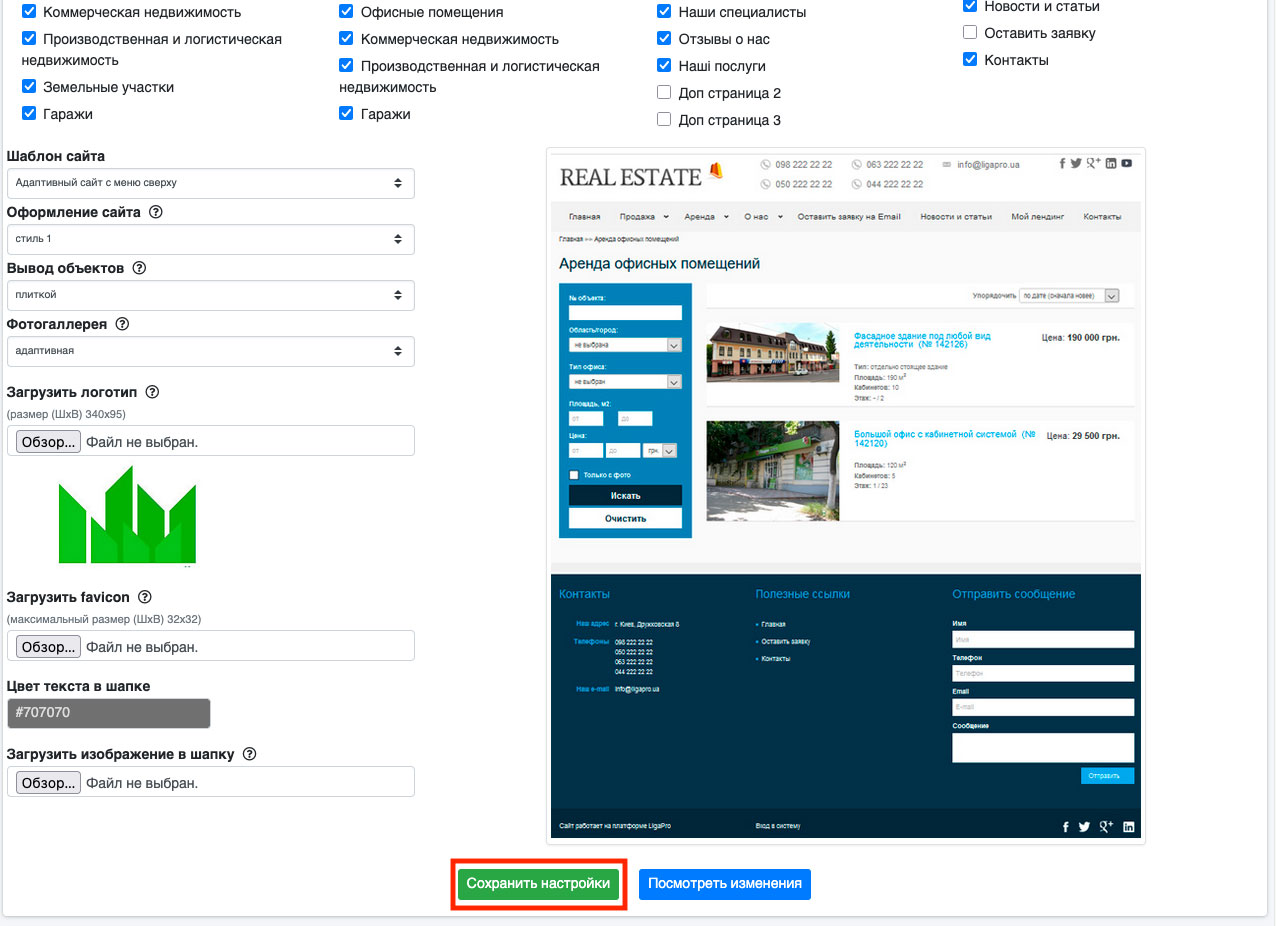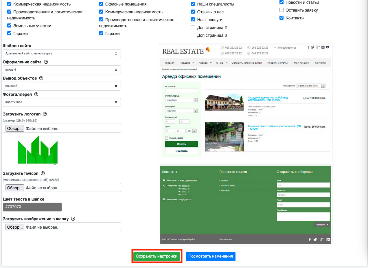 Если Вы хотите изменить эту надпись и поставить свою, найдите пункт «Надпись в блоке контакты в объекте» и введите нужный текст. После этого нажмите кнопку «Сохранить настройки» (Рис. 223).