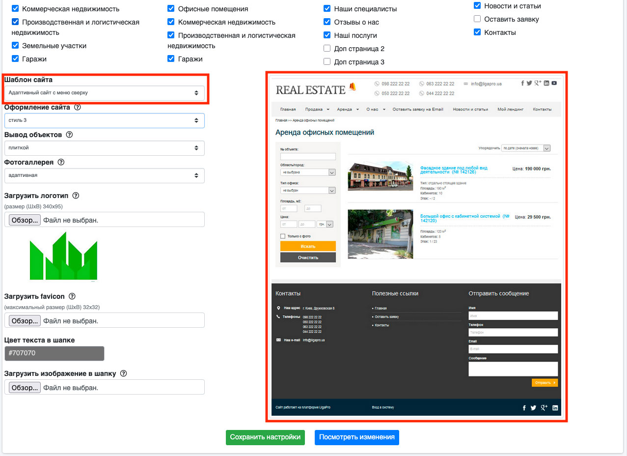 В системе ЛигаПро существует возможность создания персонального сайта. Чтобы выполнить базовую настройку сайта, перейдите в пункт «Настройки – Дизайн внешнего сайта» (Рис. 174).