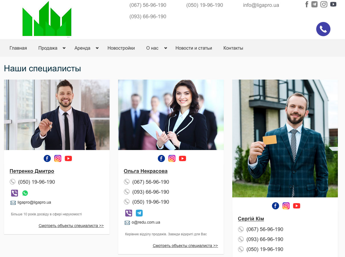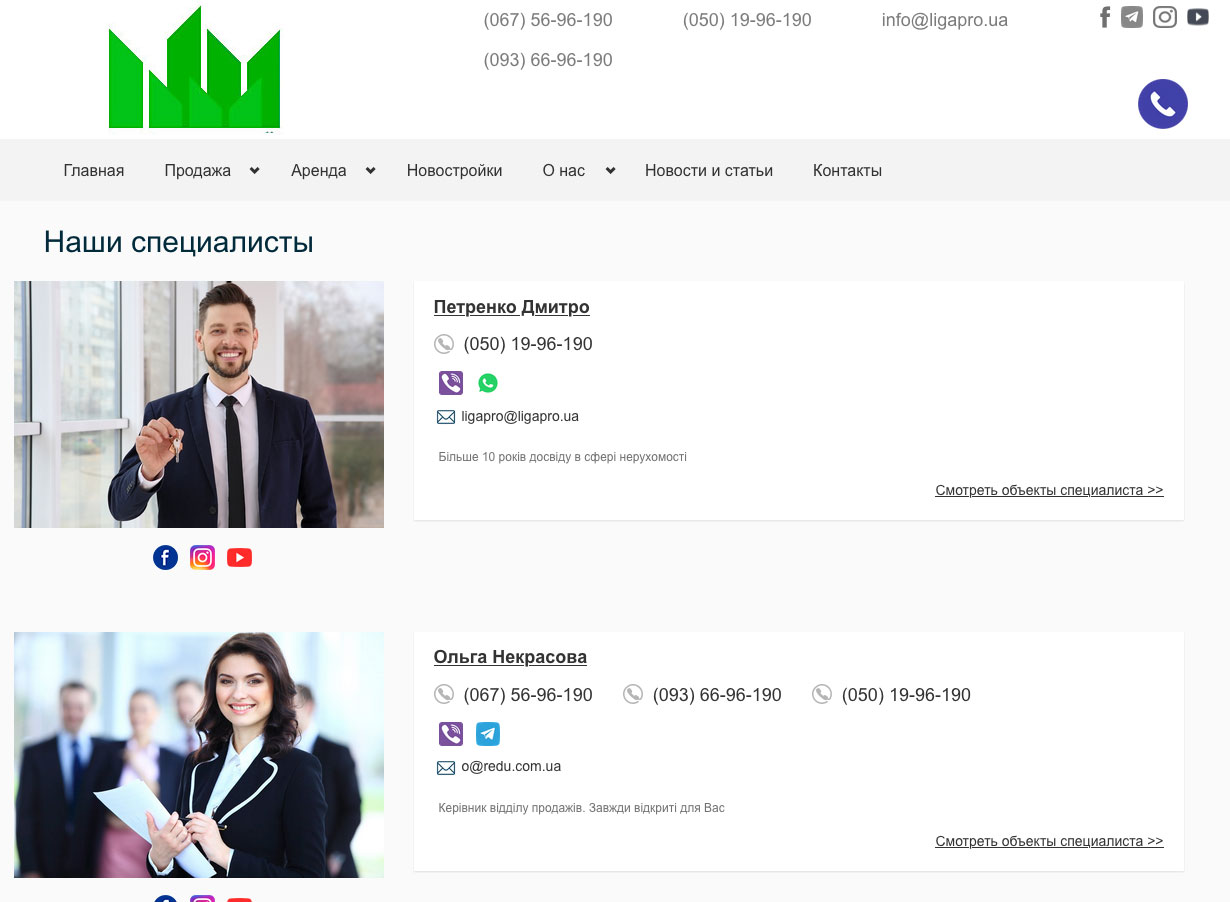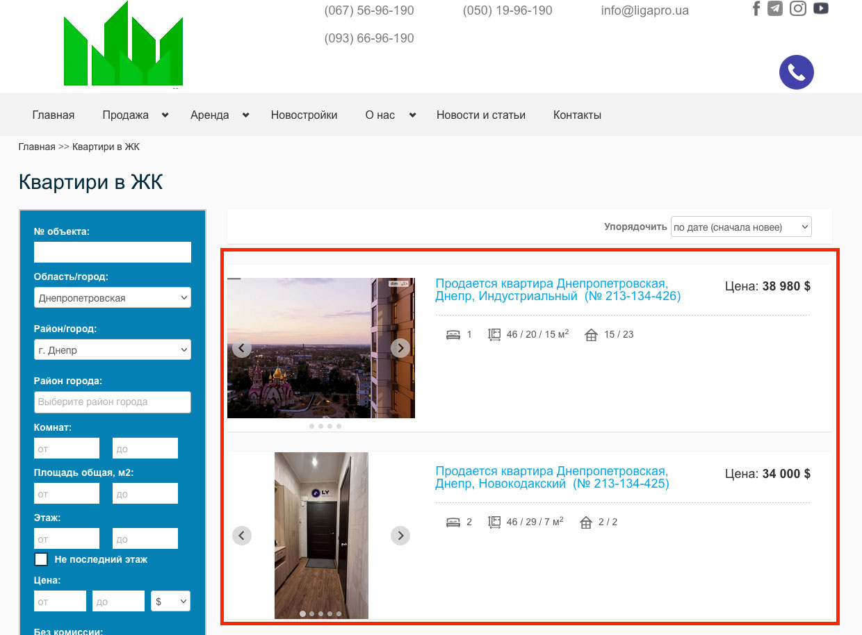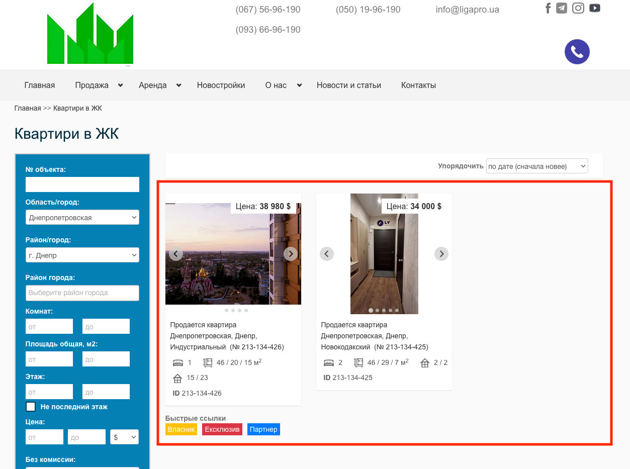 При детальном просмотре объекта, под контактами риэлтора, располагается форма отправки сообщения риэлтору (все эти заявки попадают в раздел «Заявки/Лиды» системы ЛигаПро) (Рис. 228).