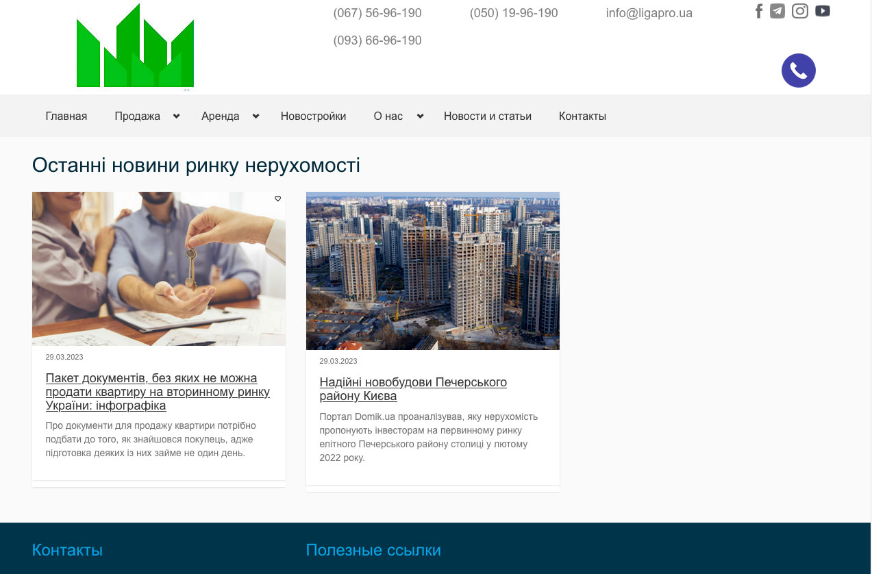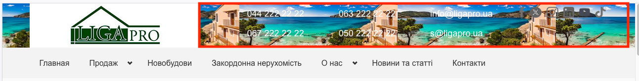 На внешнем сайте в верхней части отображаются телефоны агентства (Рис. 209).