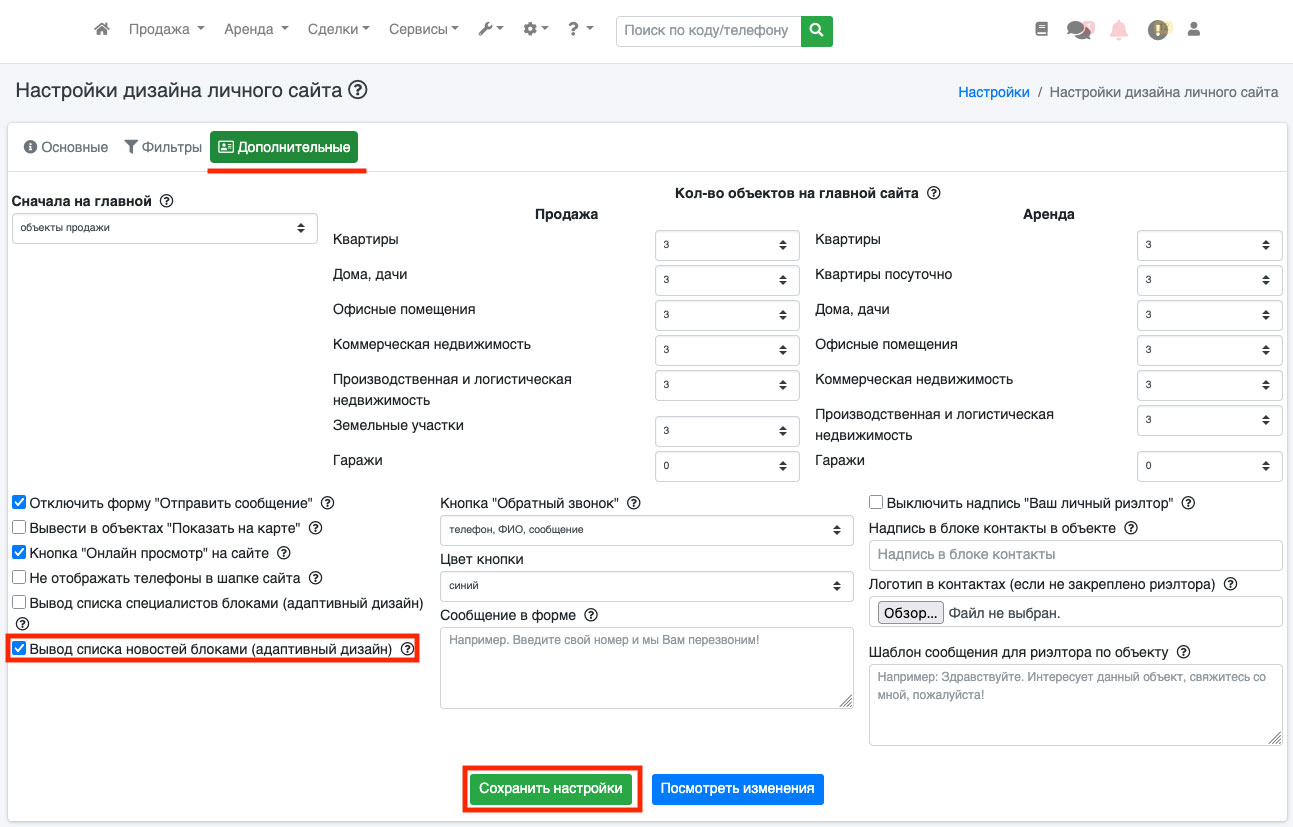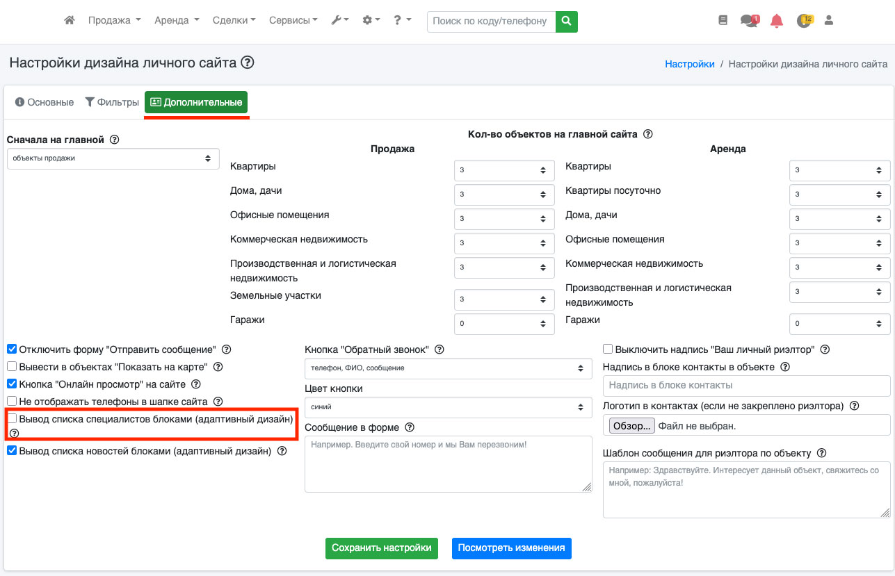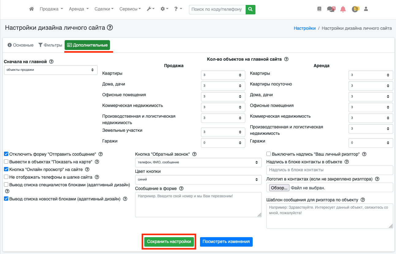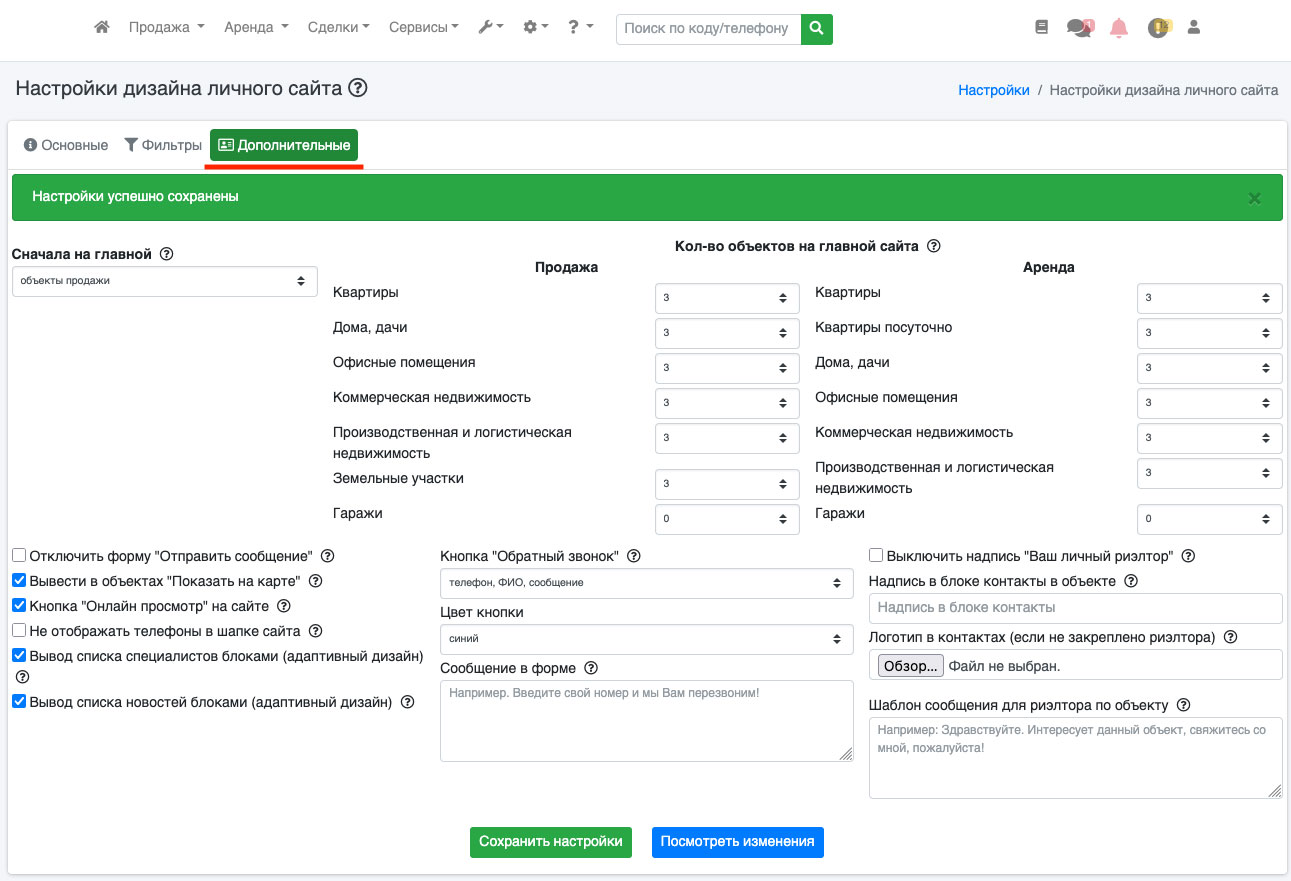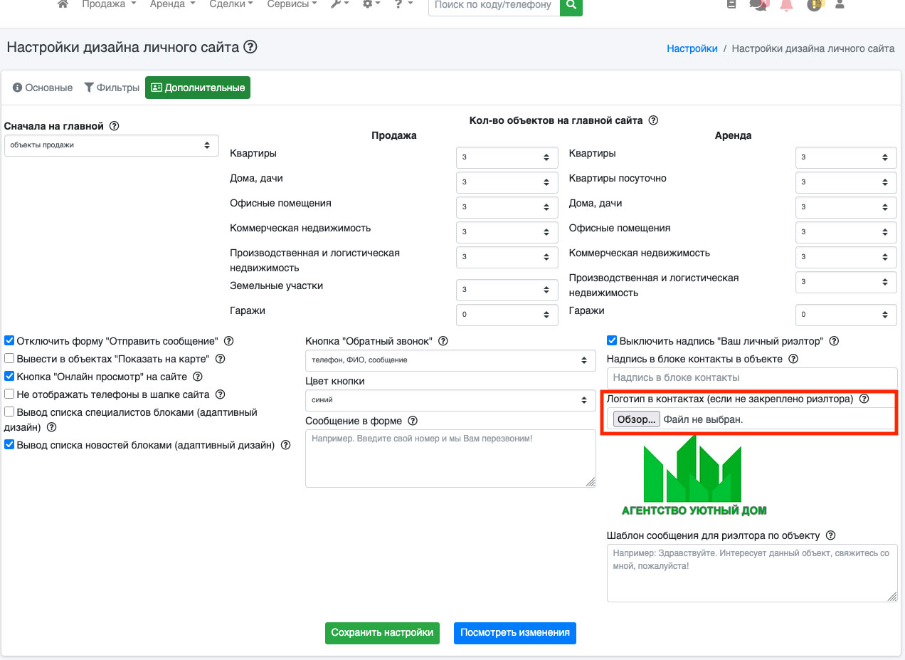 Если Вы хотите отключить эту надпись, найдите пункт «Выключить надпись 'Ваш личный риэлтор'» и поставьте там галочку. После этого нажмите кнопку «Сохранить настройки» (Рис. 220).