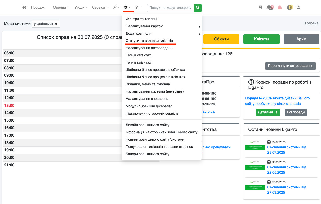 3.Вы сами можете выбрать, где выводить данное поле: выводить в таблице системы, выводить в фильтрах системы. Для добавления нового поля зайдите в раздел «Настройки-Дополнительные поля- Настройки дополнительных полей в сделках» (Рис. 1670).