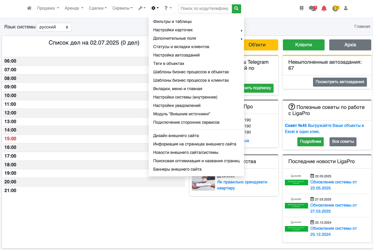 Цей пункт налаштувань доступний лише адміністратору системи (користувачеві, який був створений під час реєстрації системи), або користувачу, якому було надано право на налаштування сайту (див. інструкцію «Управління користувачами»).