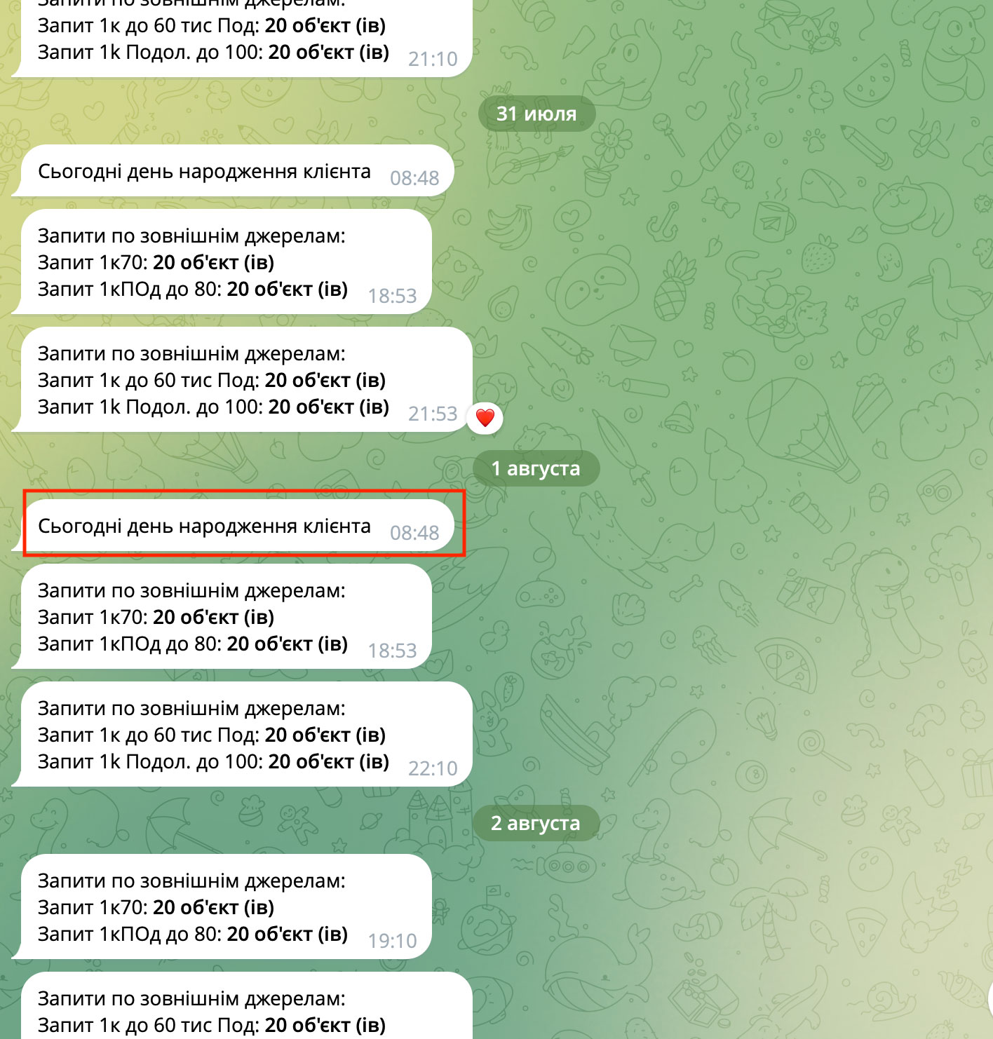 У системі ЛігаПро існує можливість вказувати день народження клієнтів. Додатково у цей день система надсилатиме Вам повідомлення, що у Вашого клієнта день народження.