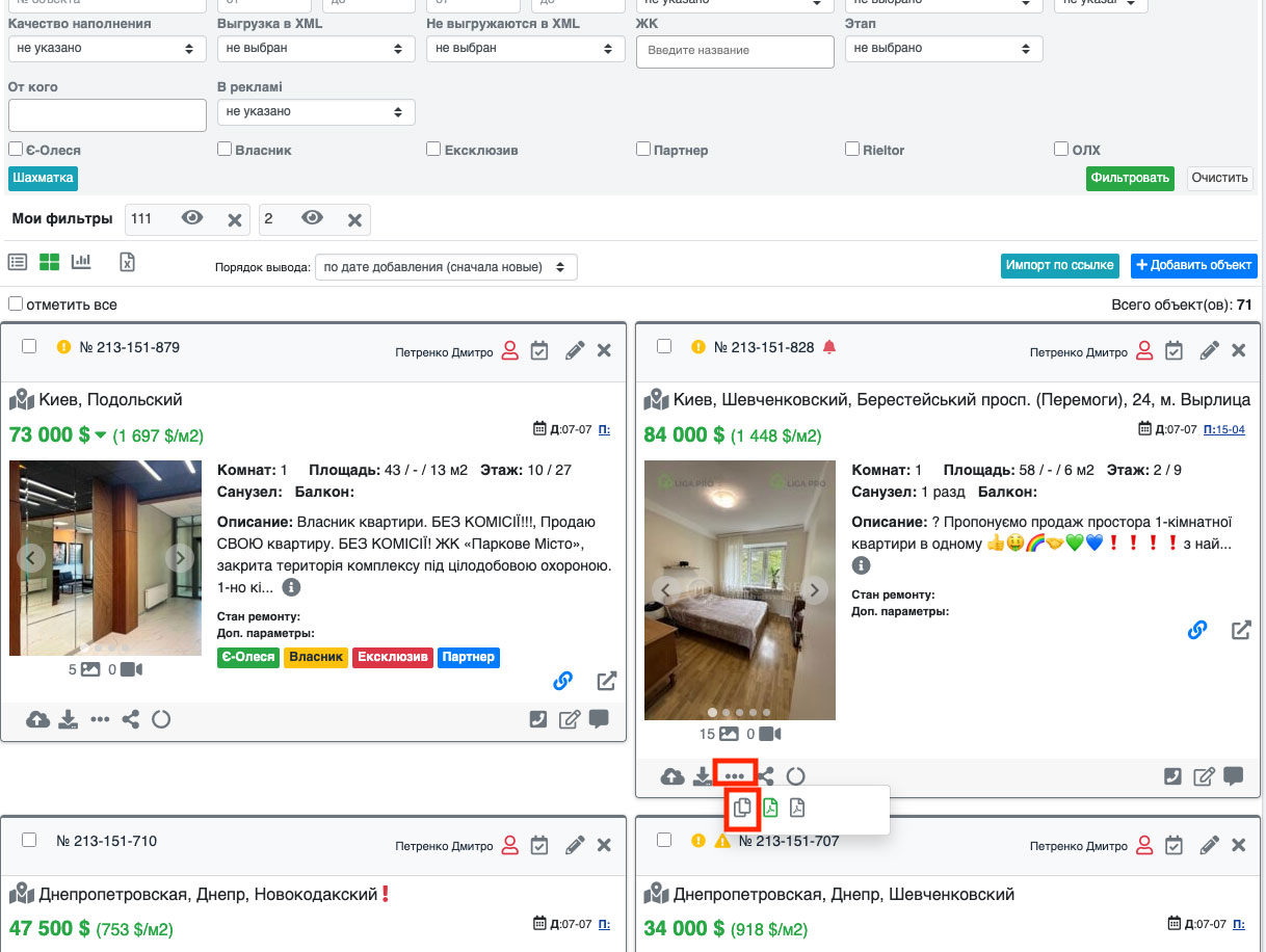 Откроется дополнительное меню, где нужно нажать на иконку «копировать», откроется диалоговое окно, в котором система предложит выбрать, куда Вы хотите скопировать объект. Укажите нужную вкладку и нажмите кнопку «Копировать» (Рис. 1733).