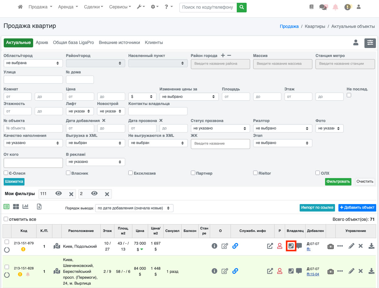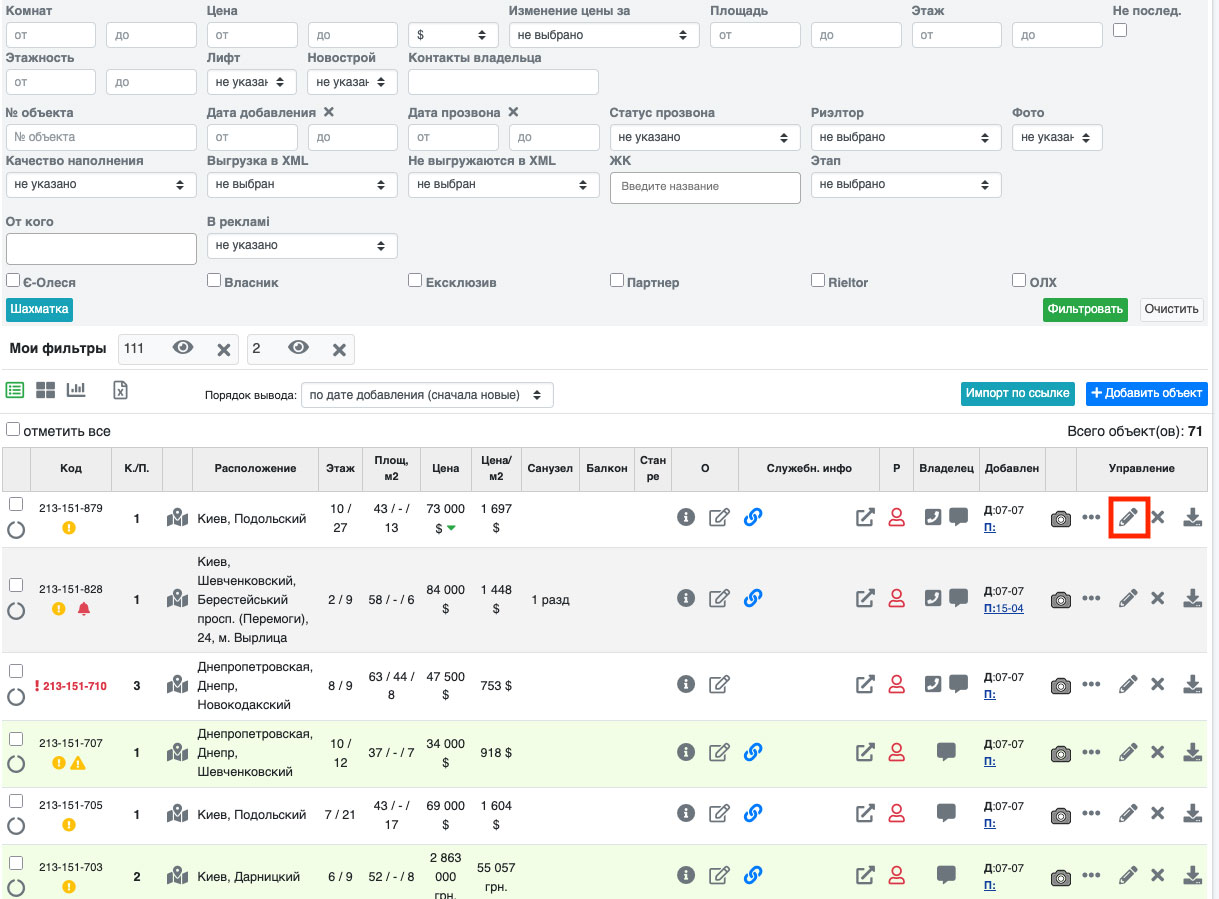 Також у Вас є можливість подивитися які саме об'єкти бот надсилав клієнту. Для цього біля потрібного клієнта натисніть іконку списку об'єктів (Рис. 1719).