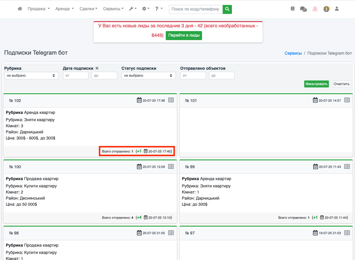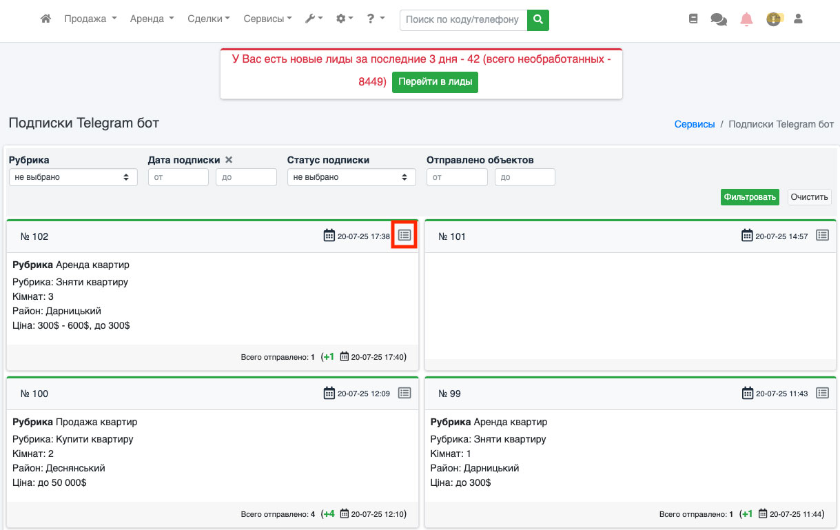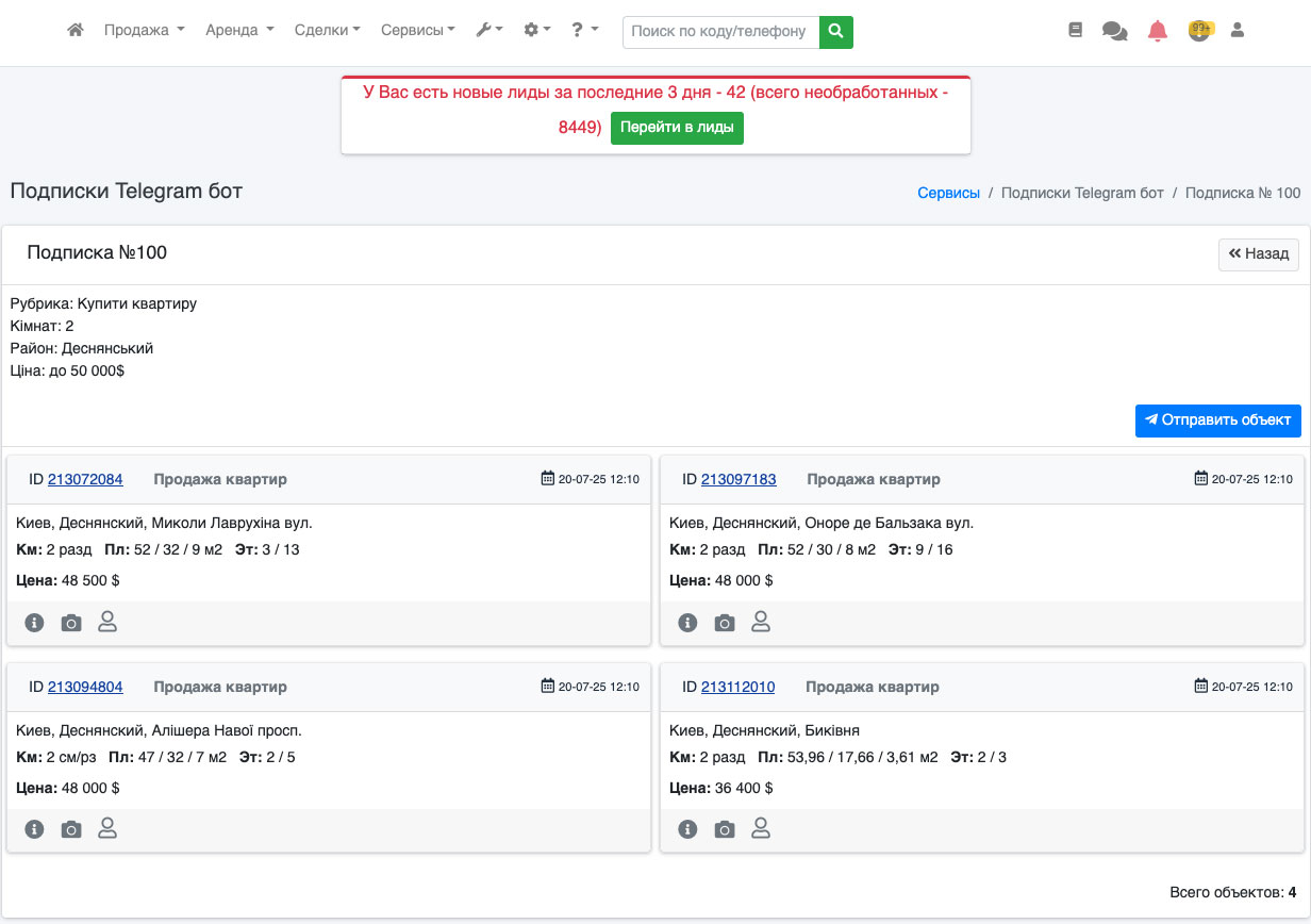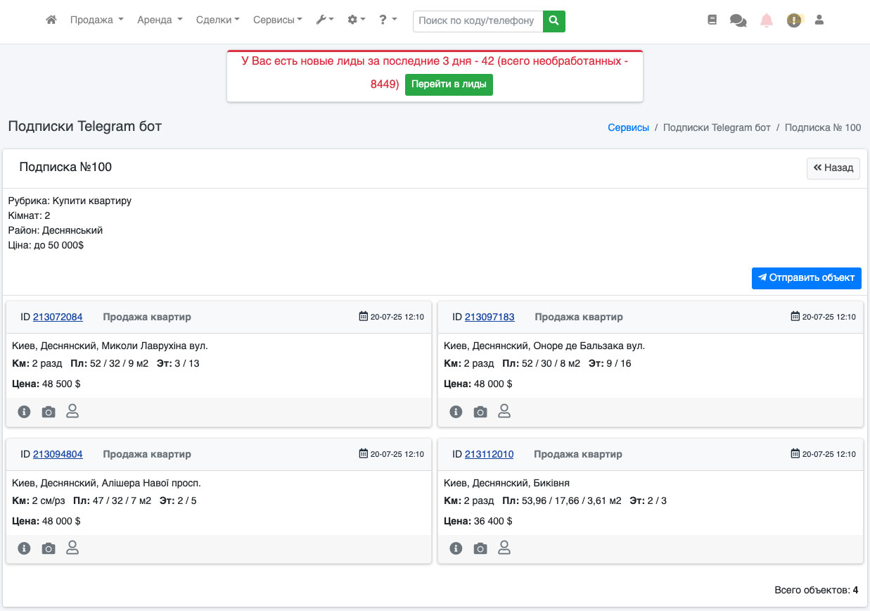 Щоб зняти об'єкт із сайту, перейдіть до списку об'єктів у потрібній рубриці та зайдіть в його редагування бота (Рис. 1744, Рис. 1745).