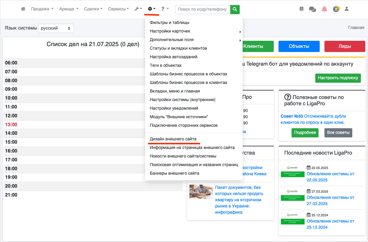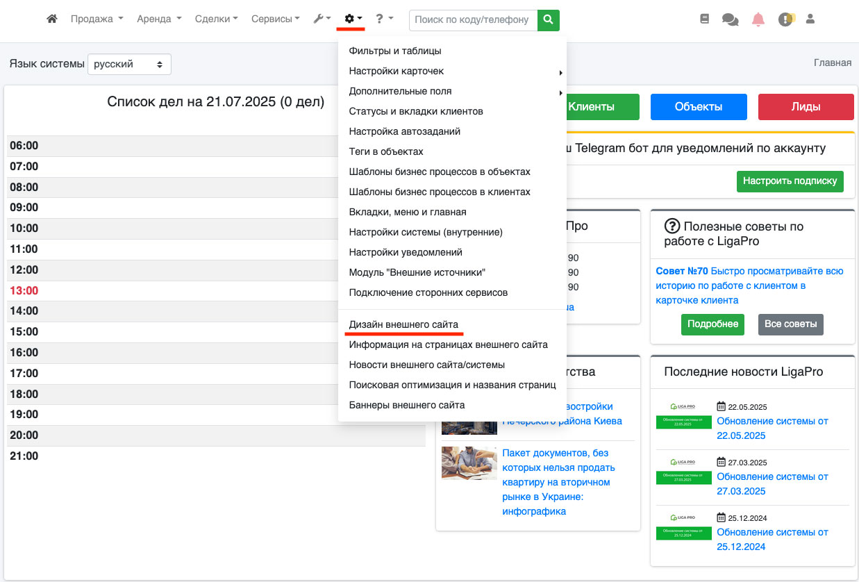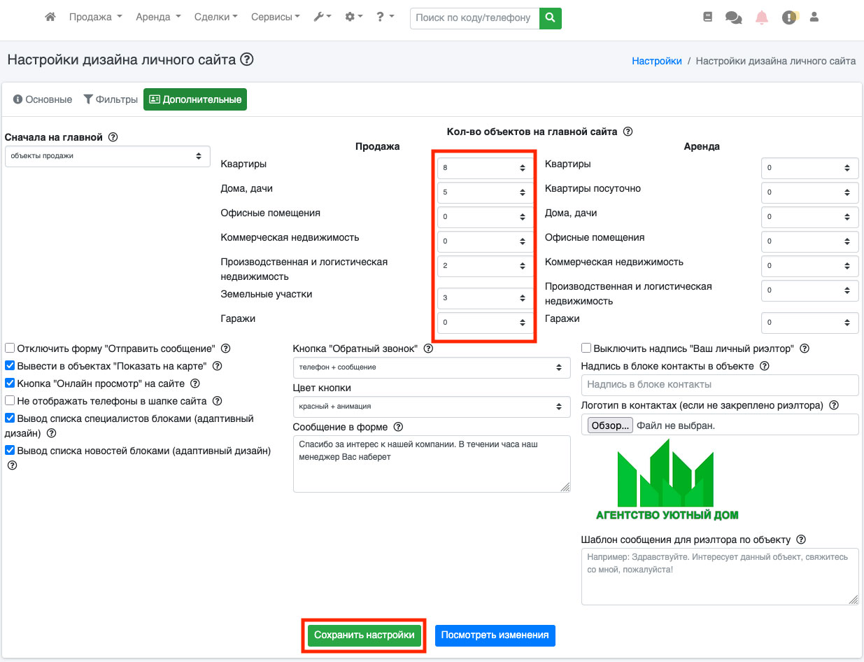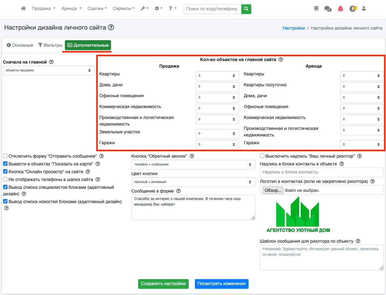 На сторінці, що відкрилася, Ви побачите два блоки для налаштування вкладок для клієнтів продажу та вкладок для клієнтів оренди (Рис. 1780).