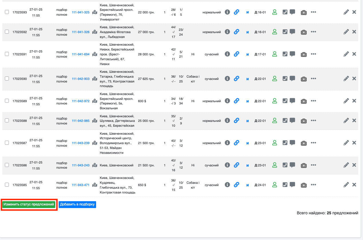 Если хотите изменить статус предложений, нажмите кнопку «Изменить статус предложений» (Рис. 1814).