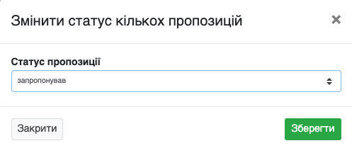 Якщо Ви бажаєте змінити статус пропозицій, натисніть кнопку «Змінити статус пропозицій» (Рис. 1788).